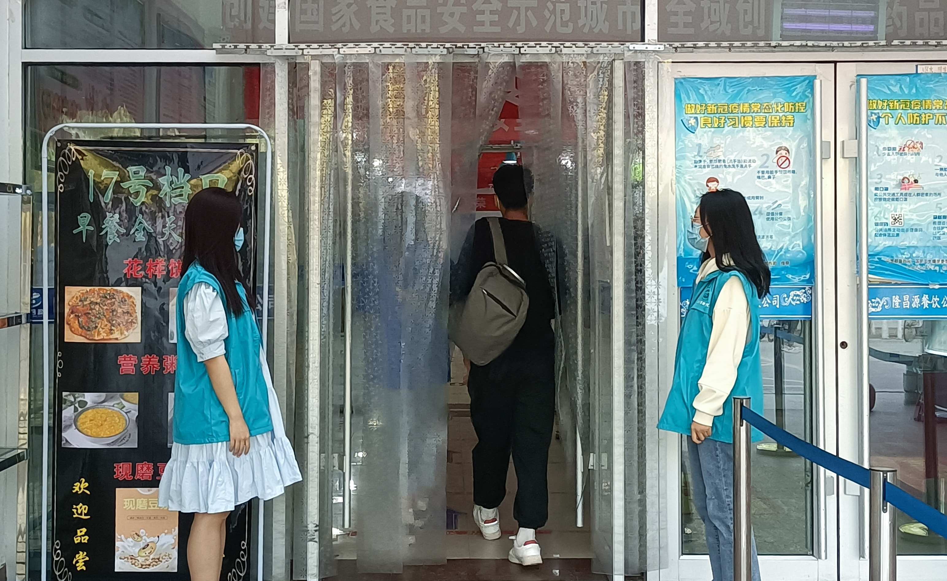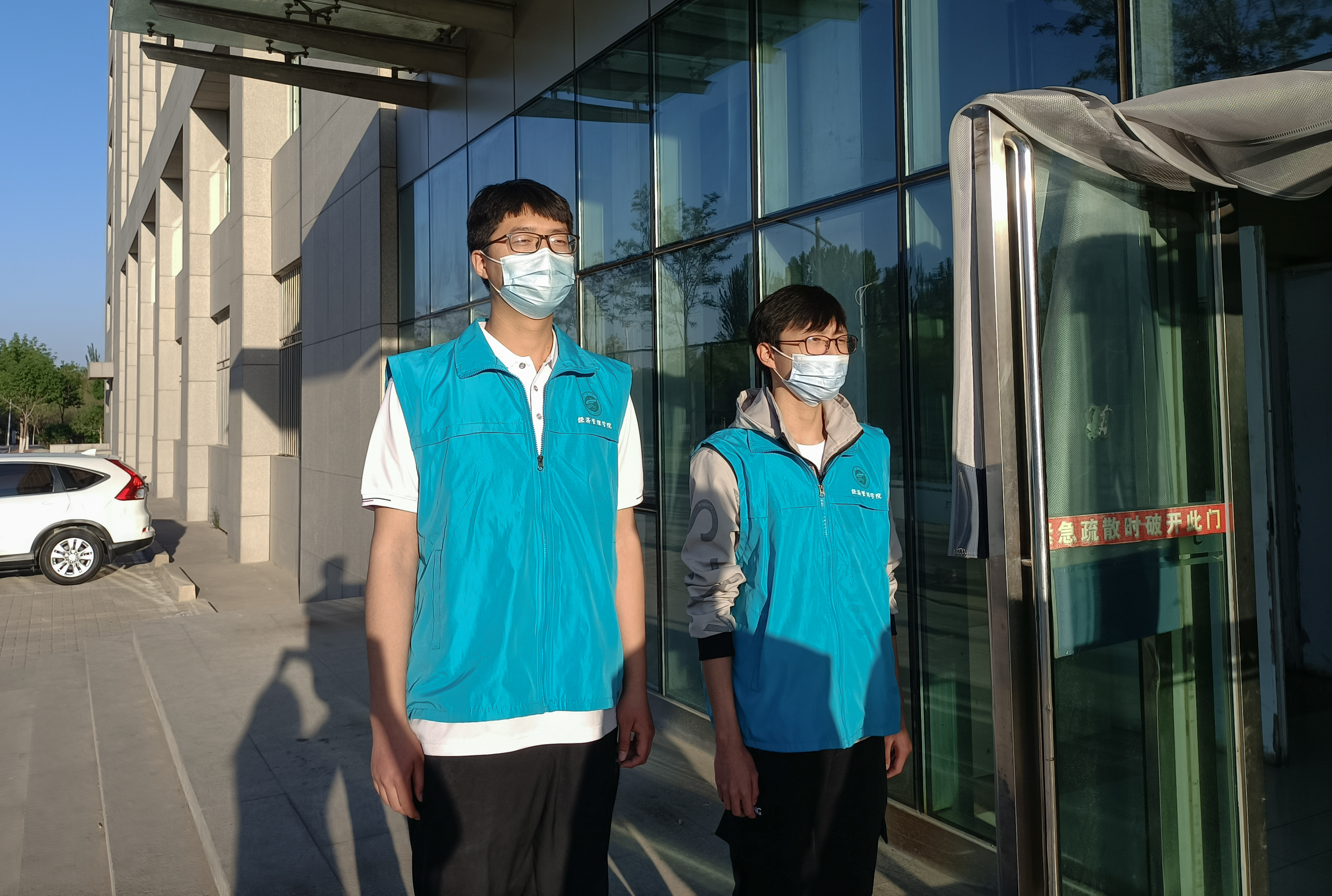 活动中,志愿者们身着工作服,提醒同学们注意防疫。“同学你好!请佩戴好口罩,注意个人防护哦!”“同学,注意保持距离哦!”一句句善意的提醒,一声声温暖的问候,字字句句都流露着志愿者们对大家的殷切关心。那一抹红在阳光的照射下格外刺眼,校园里志愿者们的身影无处不在,防疫工作也在井然有序地进行。