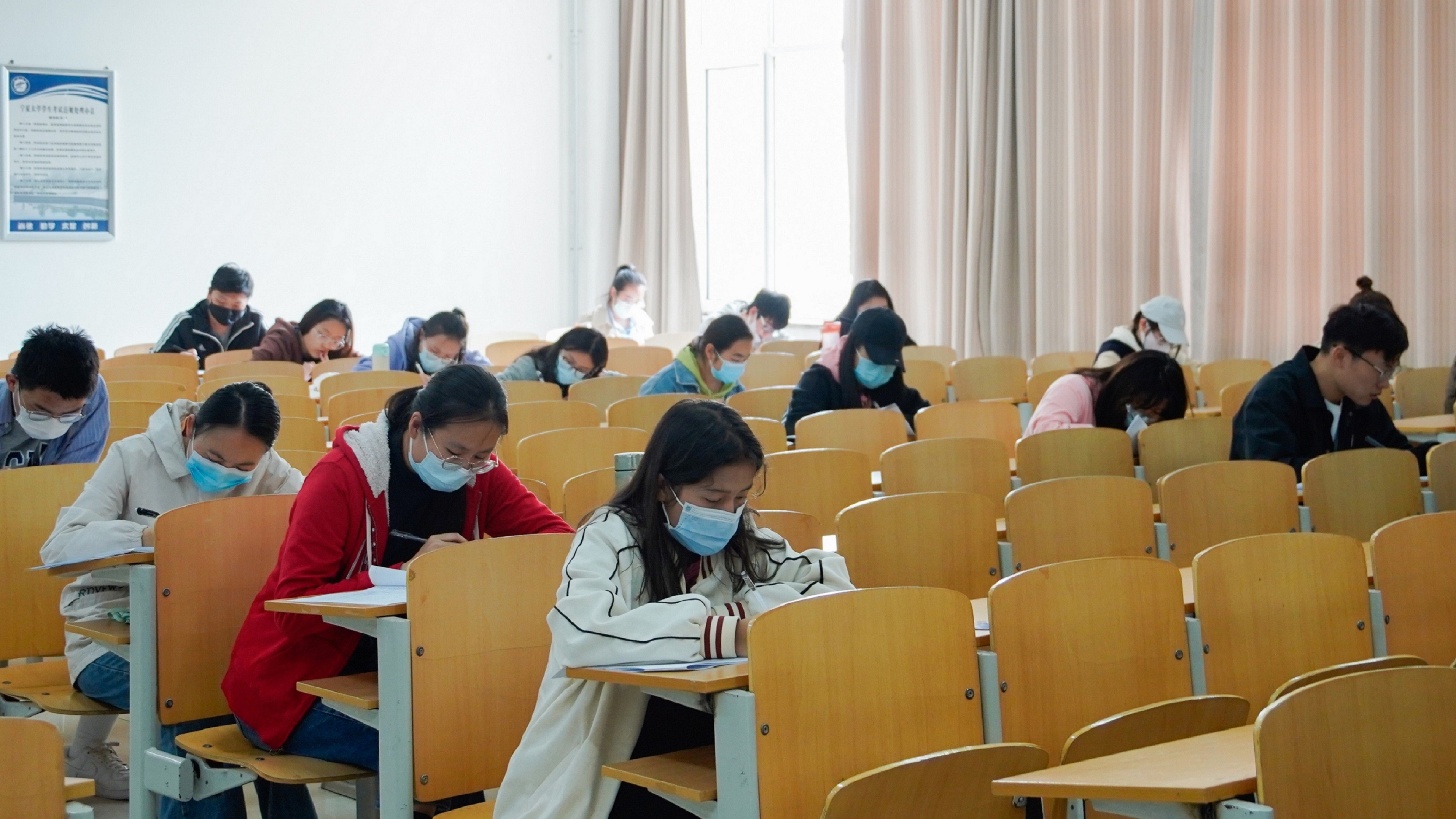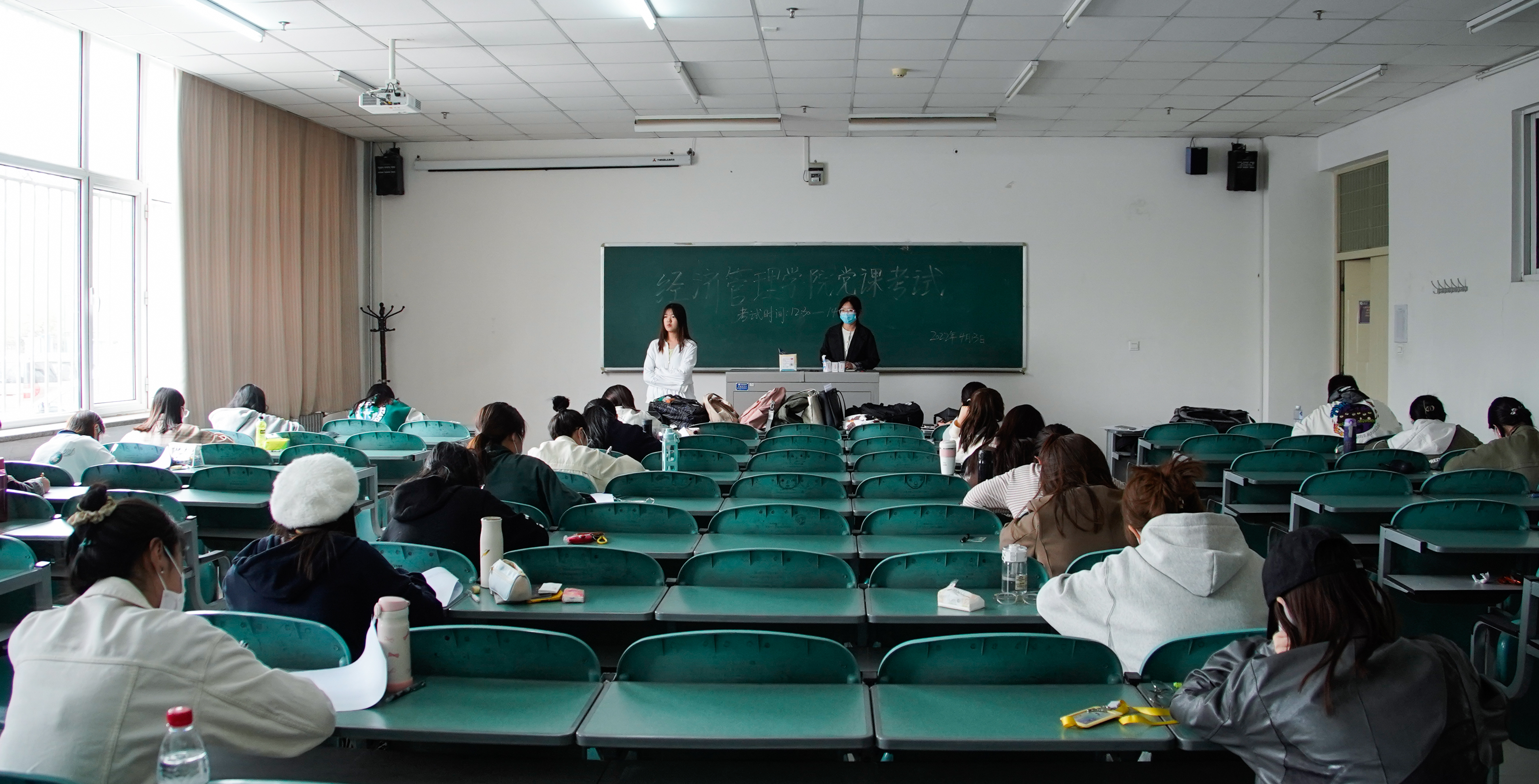 在贺兰山校区文荟楼一楼教室进行了党课结业考试,因疫情防控要求,部分同学采取线上考试的方式。全体入党积极分子和发展对象参加考试。