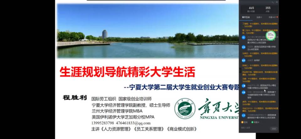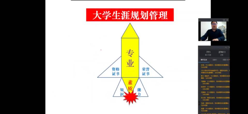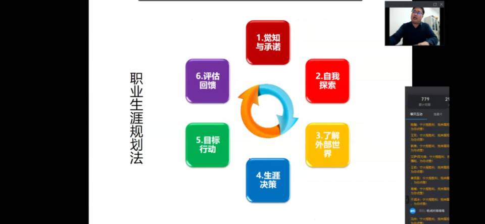 程胜利将职业生涯规划的内容分为了解自己、了解职业、职业生涯决策三个方面,并以其个人的职业发展历程为例,鼓励同学们不断挑战自我,追求卓越,不要停下学习的脚步,继续考研、考博,进一步提升学历,增长智慧才干。程胜利同时强调新时代的大学生在做职业生涯规划时要做到“知己知彼”,即了解自己,了解职场,并找到“人—职匹配”的平衡点。