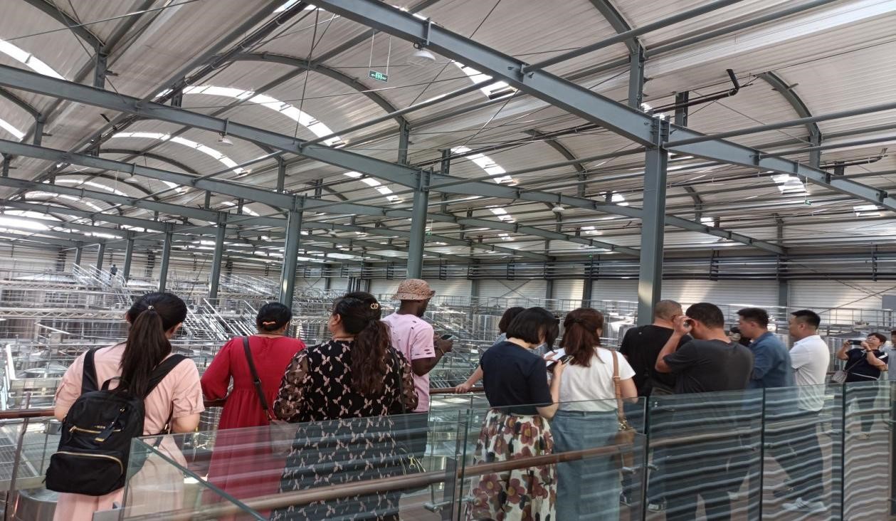 全体师生在引导员的陪同下首先参观了西鸽酒庄的全流程生产设施设备,了解了西鸽酒庄的发酵——陈酿——瓶储等生产工艺环节以及酒庄的品牌故事,最后进行了酒庄特色葡萄酒的品尝(N28和N50)。