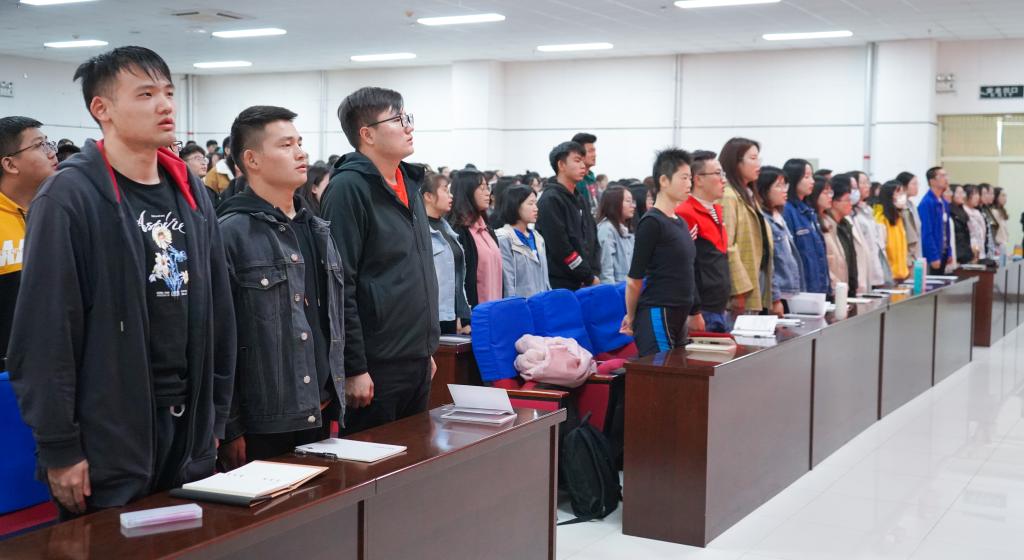 特派教师巴塔,经济学本科生党支部书记何韶华,工商管理本科生党支部书记姚硕,会计学本科生党支部书记孙文元参加了本次仪式,第十一期、第十二期发展对象和第三十五期、第三十六期积极分子到场学习。仪式由程胜利主持。