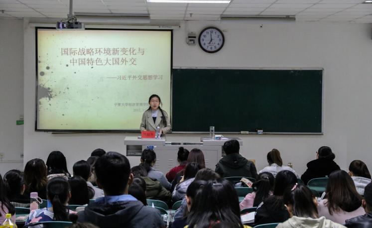党委副书记程胜利、2014级年级主任何韶华主讲的“脚踏实地,志存高远,模范引领”和“国际战略环境变化与中国特色大国外交”主题党课于贺兰山校区文荟楼130教室顺利举行。全体入党积极分子和发展对象到场参加。