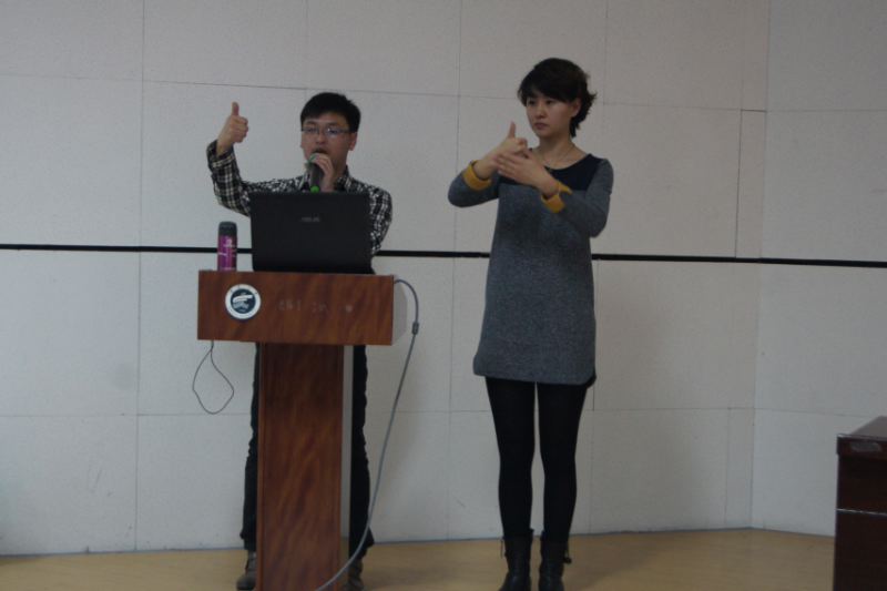阳光爱心社主办。 首先,主持人宣布爱心进校园手语推广活动开幕,并依次介绍了到场的领导和嘉宾。随后,宁夏聋人协会副主席张磊用手语致辞,他对此次活动的开展表示感谢,并希望继续大力推广手语活动,以增进残疾人士与健康人士的交流。院党委副书记桂晓兵进行致辞,他表示此次活动的开展对于加强大学生精神文明建设,提高对弱势群体的关注度具有重要意义。接着,马贵老师介绍了聋人文化和手语语法,手语老师高原进行了手语授课。本次活动在热烈的掌声中结束。 此次活动有利于培养大学生担当社会责任的能力,增强大学生的思想道德素质,提高大学生对弱势群体的关注度。对于促进残疾人士和健康人士和谐共处,加强社会主义精神文明建设具有重要意义。