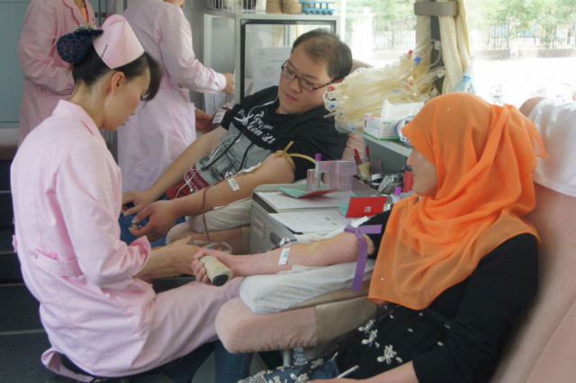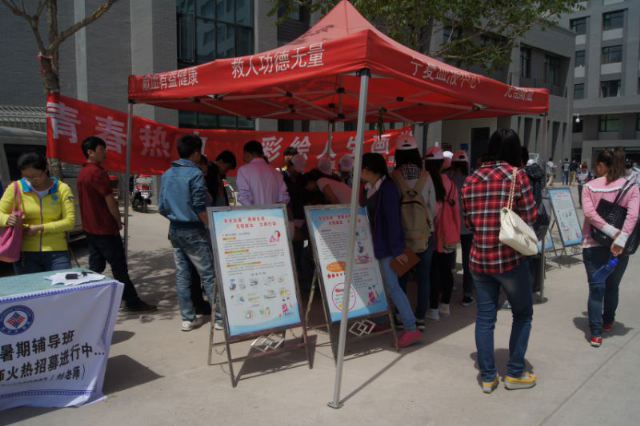 一整个上午,志愿者们积极地进行着活动的准备工作,挂横幅,贴海报,搬桌椅,搭遮阳帐篷,不遗余力地奉献着自己的爱心。中午12时左右,活动正式开始,银川市献血中心的医生为献血活动进行现场指导,很多刚下课的同学都积极的前往咨询处询问献血的具体相关事宜,专业医师和志愿者们很耐心地进行解答。即使烈日当头,师生们献血的热情依旧不减,填表,化验,抽血……所有的流程都在志愿者们的引导下井然有序的进行。一股股青春热血,一颗颗爱心满怀,充满了整个活动现场。