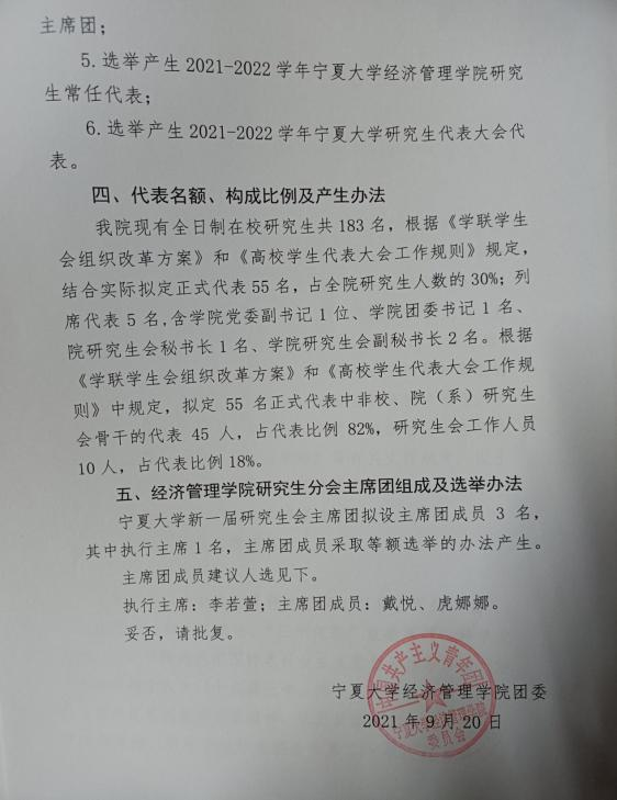 (1)院级学生代表大会代表名额一般不低于所联系学生人数的 10%。各年级班长组织成立班级研代会代表选举专项工作组,动员班级同学参与研代会代表报名,各班报名人数应不少于本班人数的4%,且不设上限(见附件4);
