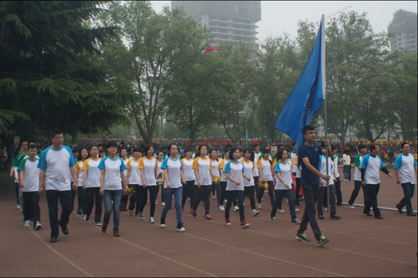 2014届全校大学生体育运动会侧记 “我运动,我健康”的青春号角吹醒了明媚的阳光,四月陕师大的体育 上,早已是人头攒动,人群如潮。