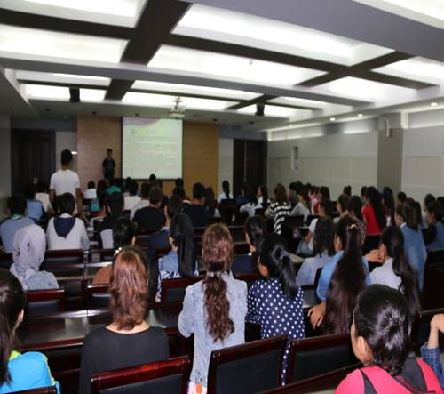 担任学生干部的经历和体会,并强调参与学生会、学生社团锻炼能力的同时也要加强专业学习。萨娜,阿依达娜和覃杨柳蓉三位同学向新生们分享了不同民族同学如何友好和睦地相处,以及怎样有取舍地参加社团活动、锻炼能力,充实地度过预科生活。期间,同学们带来的少数民族舞蹈与歌曲成为亮点,缓和了气氛,也带动了同学们参与的积极性。最后答疑环节,各位长以幽默诙谐的方式回答了新生在学习和生活方面的困惑和问题,将现场气氛推向高潮。
