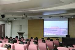 组织新生集体收看“中国人民抗日战争暨世界反法西斯战争胜利70周年纪念大会”实况直播。认真观看思考习近平总书记现场讲话,当观看到阅兵方阵迈着整齐的步伐,喊着洪亮的口号走过天安门广场时,同学们激动不已,会场里多次响起热烈的掌声。在举行升国旗仪式时,全体师生起立,行注目礼,齐唱国歌。威武雄壮的阅兵仪式让青年学子们感受到了祖国的强大,增加了祖国在心中沉甸甸的分量。直播结束后,同学们仍然沉浸在纪念大会所带来的民族自豪感中,他们备受鼓舞,热烈讨论着此次庆典活动中的精彩场景,用各种方式分享着自己的心情和感悟。