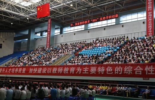 领导高度重视、辅导员组织有力,以确保全体新生按时有序地参加活动。期间,全体新生精神抖擞、整齐有序坐在观看台上,认真聆听程光旭校长对新生的淳淳教导:“第一,要珍惜时光。希望同学们珍惜大学的美好时光,不要过度沉湎于虚拟世界,不做‘低头族’,要‘抬头看路、埋头读书’,继承师大‘抱道不曲、拥书自雄’的优良学风,多读书,读好书,积极参加各类实践活动,全面提升自身综合素质;第二,要有梦想。希望同学们有梦想,有追求,敢于攀登,勇于创新。要有大胸怀、大追求、大担当,始终保持青春之朝气、青春之豪情,放眼未来,放眼世界,拥抱梦想,拥抱时代。第三,要勤奋。希望同学们在未来的学习中,发扬吃苦精神,勤奋钻研,日积月累,厚积薄发。四年之后,一定会发现一个不一样的自己。”认真听取学长讲述的大学期间学习以及生活经验,分享的成长历程;认真聆听尊敬的老师对新生的期许,希望同学们郑重对待大学生活,珍惜时光,做自身和社会的引领者,做真正对国家和社会有用的人才。全体新生听到精彩之处,不断地爆发出一阵阵热烈的掌声。