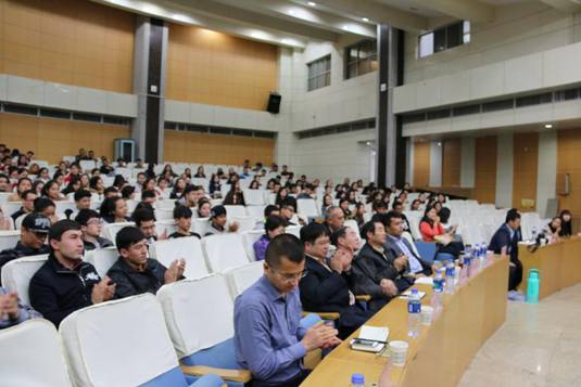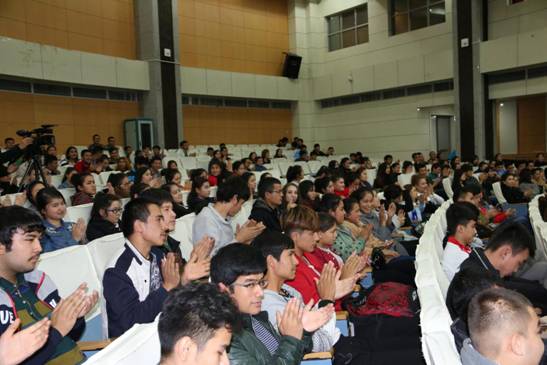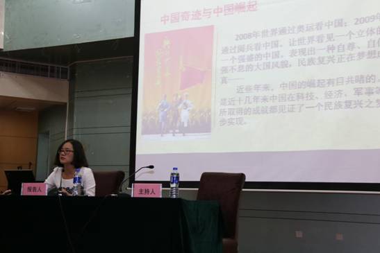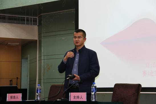 宣讲会上,来自新疆师范大学的张丽娟博士做了题为“感恩伟大祖国、建设美好家园”的专题报告。张丽娟老师对新疆籍学生提出了三点希望:首先要认清形势,明辨是非。她强调目前中国正在崛起,少数反动分子以各种名义为由挑起事端,特别是近期发生的新疆暴力事件,更是给大家的生活及新疆少数民族的名誉产生了巨大的影响。国家主席习近平已经将新疆工作提到了重要位置,可以说新疆工作事关社会稳定和国家的长治久安。其次,要擦亮眼睛,坚定立场。针对目前少数不法分子利用宗教洗脑的行为,作为当代大学生必须要擦亮自己的眼睛,坚定立场,提高警惕,勿被少数人利用,成为他们犯罪的工具。最后,要不辱使命,勇于担当。针对目前社会上出现的种种有关新疆的言论和看法,大学生应当理性思考和对待,切不可人与亦云,同时应当自觉维护新疆的形象,树立正确的世界观、人生观和价值观。新疆维吾尔自治区团委组织部副主任科员赛迪艾合买提·亚尔买买提以“奋斗的青春最美丽”为主题在宣讲会上与参会师生分享了他的求学经历,鼓励广大新疆籍学生努力学习,增长才干,感恩国家,共同建设美好家园。
