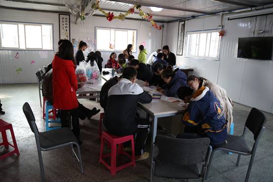 在负责老师的详细介绍之后,孩子们进行了简单的自我介绍并演唱了《感恩的心》,每一句歌词都在抒发他们心中的感情,让志愿者感动至深。之后,我们的党员志愿者们精心准备了三个环节的活动:教孩子们学唱歌曲《明天会更好》、与孩子们一起做游戏、教孩子们画画写字。一下午,大家在一起做游、学习的欢声笑语充满整个房间。