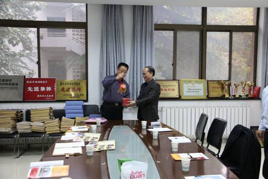 领导和老师赠送具有壮族文化特色的“绣球”作为纪念。