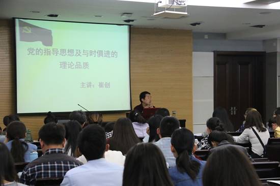 于崇鋈楼思齐堂举行了第九期党课培训第二讲。数科院党委副书记崔创以《党的指导思想及与时俱进的理论品质》为主题,史实结合,作了一场精彩的讲座。