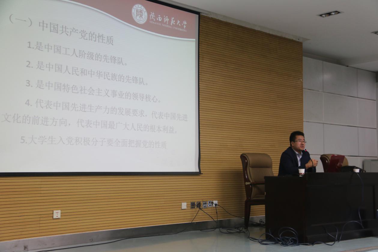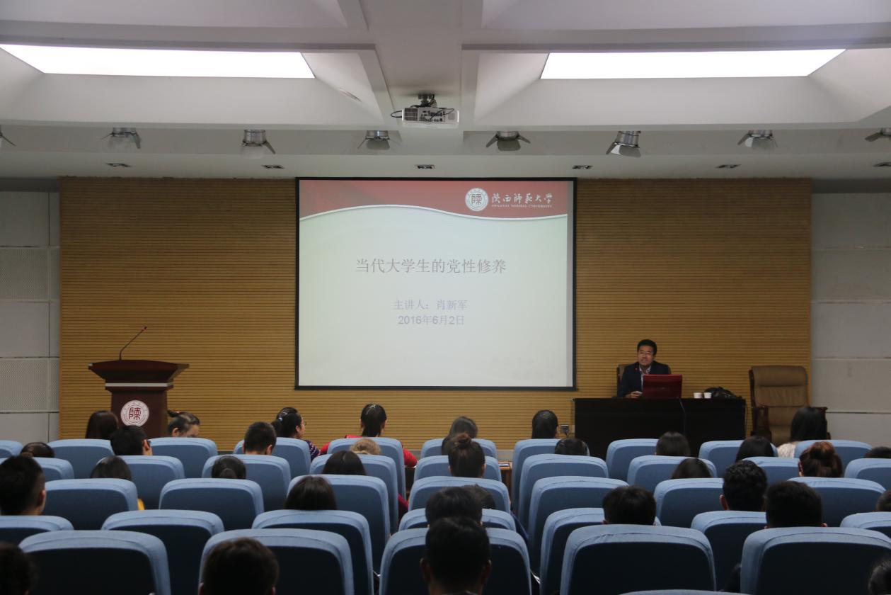 在崇鋈楼学思堂举行第九期入党积极分子培训第五讲,本次培训邀请理工科基础教学部学生工作负责人,副处级干部肖新军老师担任主讲。