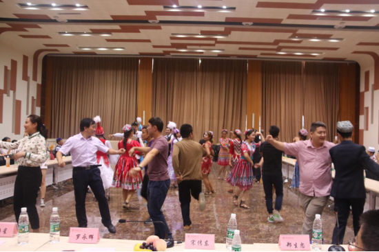 党总支书记郑生忠老师向参加会议的同学致以节日的祝贺,并希望佳节来临时思念亲人的同学能够将师大当作自己的家,将老师同学们当作自己的家人。为庆祝这个欢乐祥和的节日,郑书记引吭高歌了一曲《父亲的草原,母亲的河》,座谈会人员热情高涨。