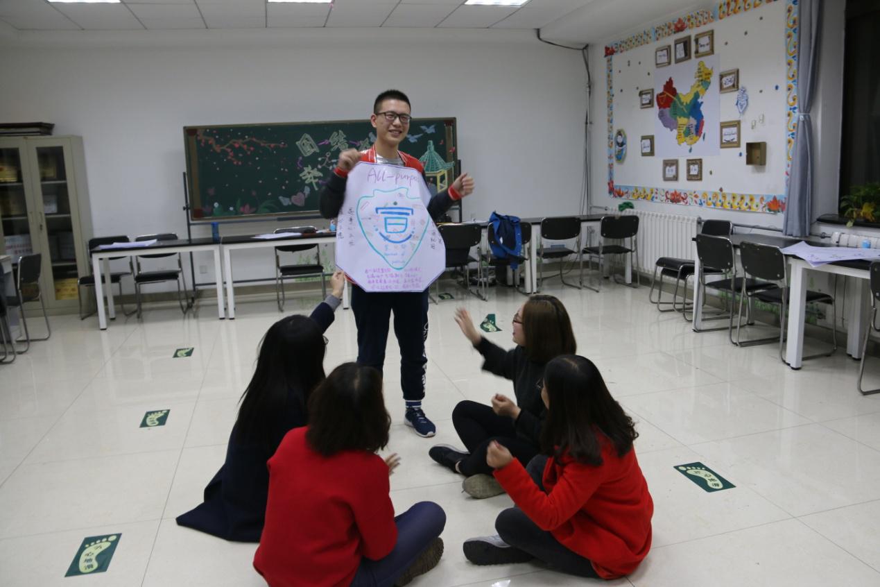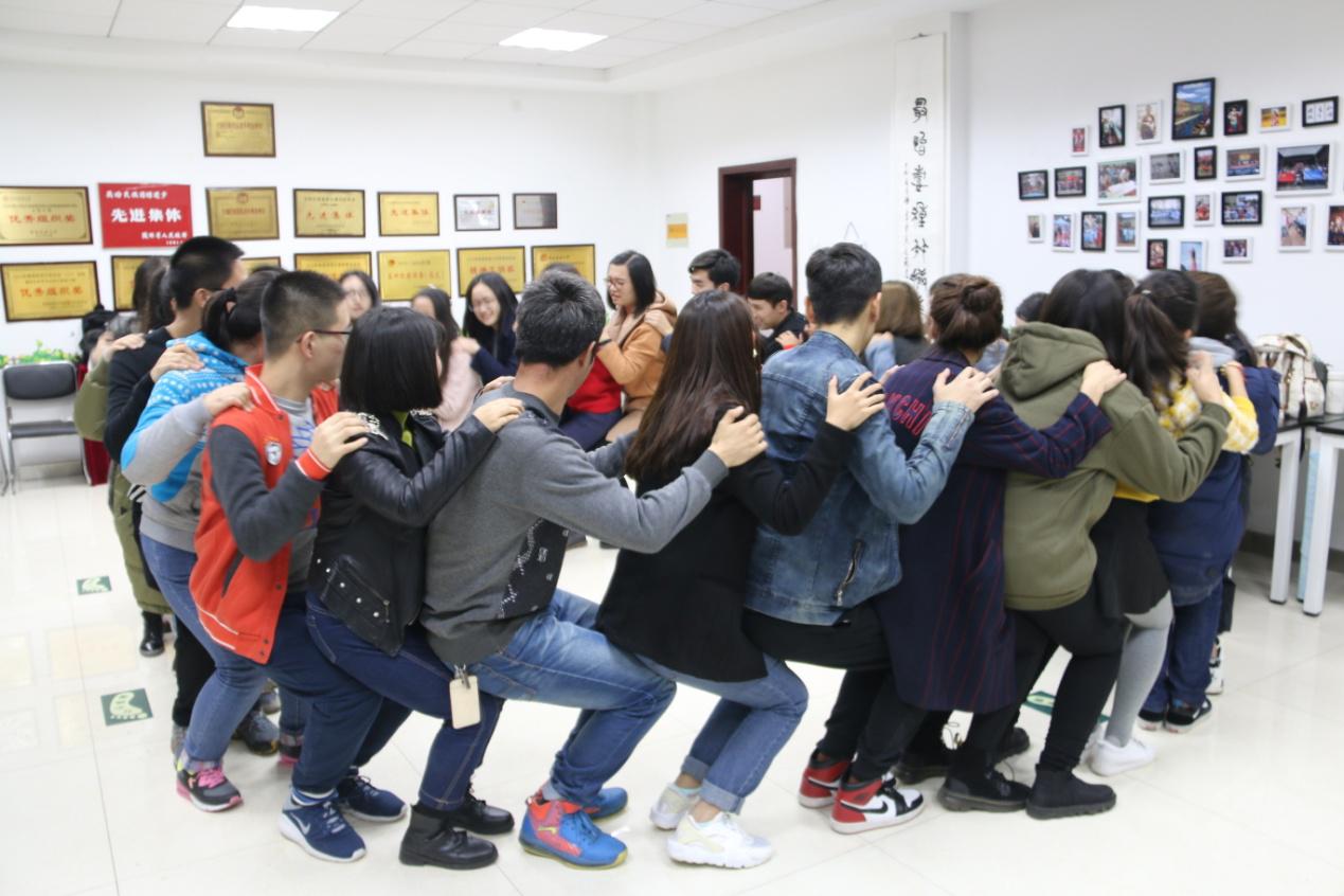 此次活动在第一期团辅活动的基础上顺利展开。活动开始,由辅导员蒙桂芳介绍本次活动的意义以及流程。本期第一环节为“组队漫画”, 分组并让各小组设计各自团队的队名、口号、创作队徽、队歌和队训,并展示在漫画中,目的是建立团队契约,形成团队氛围。在建立团队后,老师及学生们一起参与了“妙手解开千千结”和“人椅”等活动,锻炼了小组成员团结协作、解决问题的能力,加强了团队成员间相互信任与合作意识,培养了队员勇于解开人与人之间的“结”和主动化解工作中遇到矛盾的广阔胸襟。
