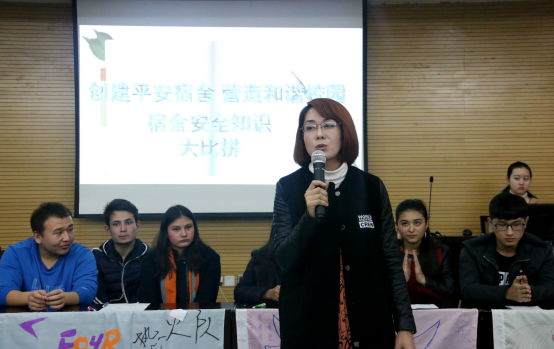 迪丽努尔老师对此次竞赛做了总结讲话,她说宿舍是在校学生三分之二的活动场所,通过看似简单但内容非常丰富的宿舍安全知识大比拼来提高大家自身的安全意识,希望大家共同营造平平安安的宿舍生活、快快乐乐的校园学习生活。