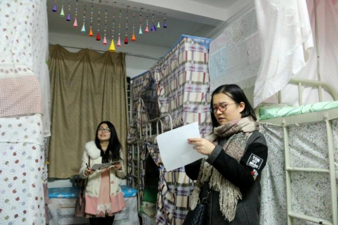 本轮的宿舍评比是宿舍文化节活动的最后阶段,评比检查严格按照活动要求分别从宿舍的整体美观、宿舍天地、宿舍全家福、用品摆放等方面进行评分,满分为一百分,学生会生活部的成员将会对本轮的评比与前两轮的评比进行全面的总合,评比结果将面向全院进行公布。宿舍检查评比结束后,辅导员热依木对本次检查评比进行总结,充分肯定了大部分学生良好的宿舍环境,强调宿舍是大学生活的主要场所,同时也使同学们重视宿舍精神文化建设,加强自身学风建设,促进创建学风浓郁、环境整洁、文明和谐、凝聚人心的温馨宿舍环境。