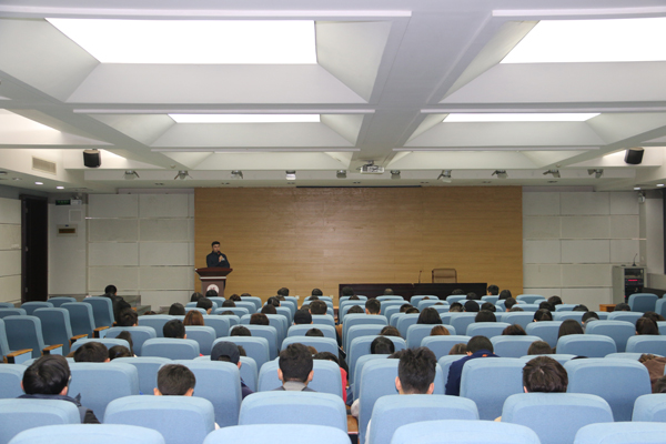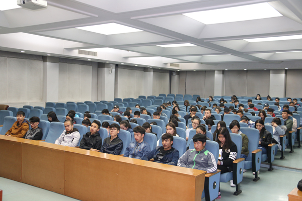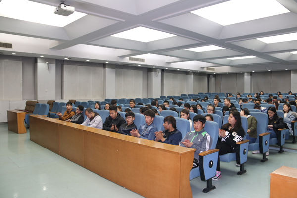 在崇鋈楼一楼学思堂召开2016-2017学年第一学期补考动员暨学风建设教育大会,党总支副书记窦文阳出席大会并讲话。会议由预科本科辅导员热依木主持。