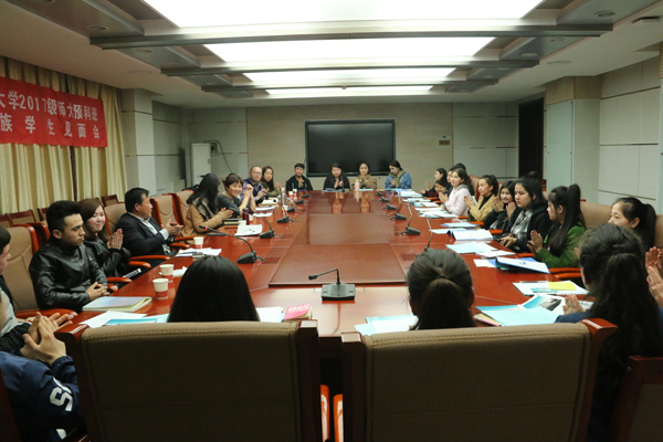 辅导员热依木以及目标院校为陕西中医药大学的20名少数民族预科生。见面会由陕西中医药大学学工部部长赵娴主持。