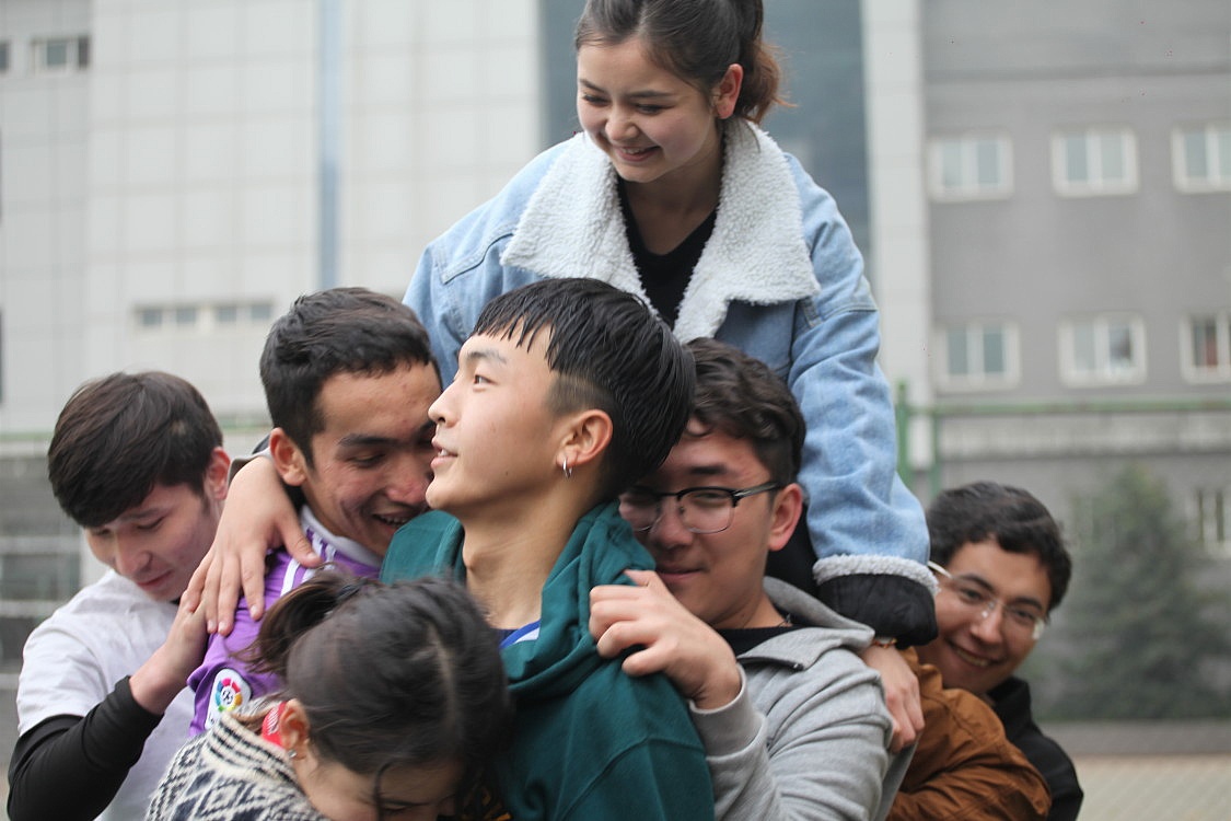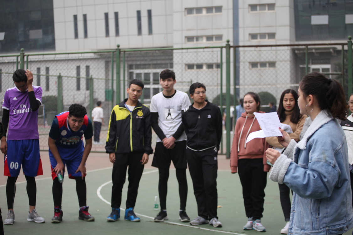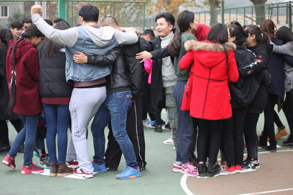 篮球场开展了以“1+1>2—增进交流,提高班级凝聚力”为主题的团体心理辅导活动。活动由五班心理委员指导,各班委组织实施,全班同学共同参与,活动由团支书凯迪娅主持。