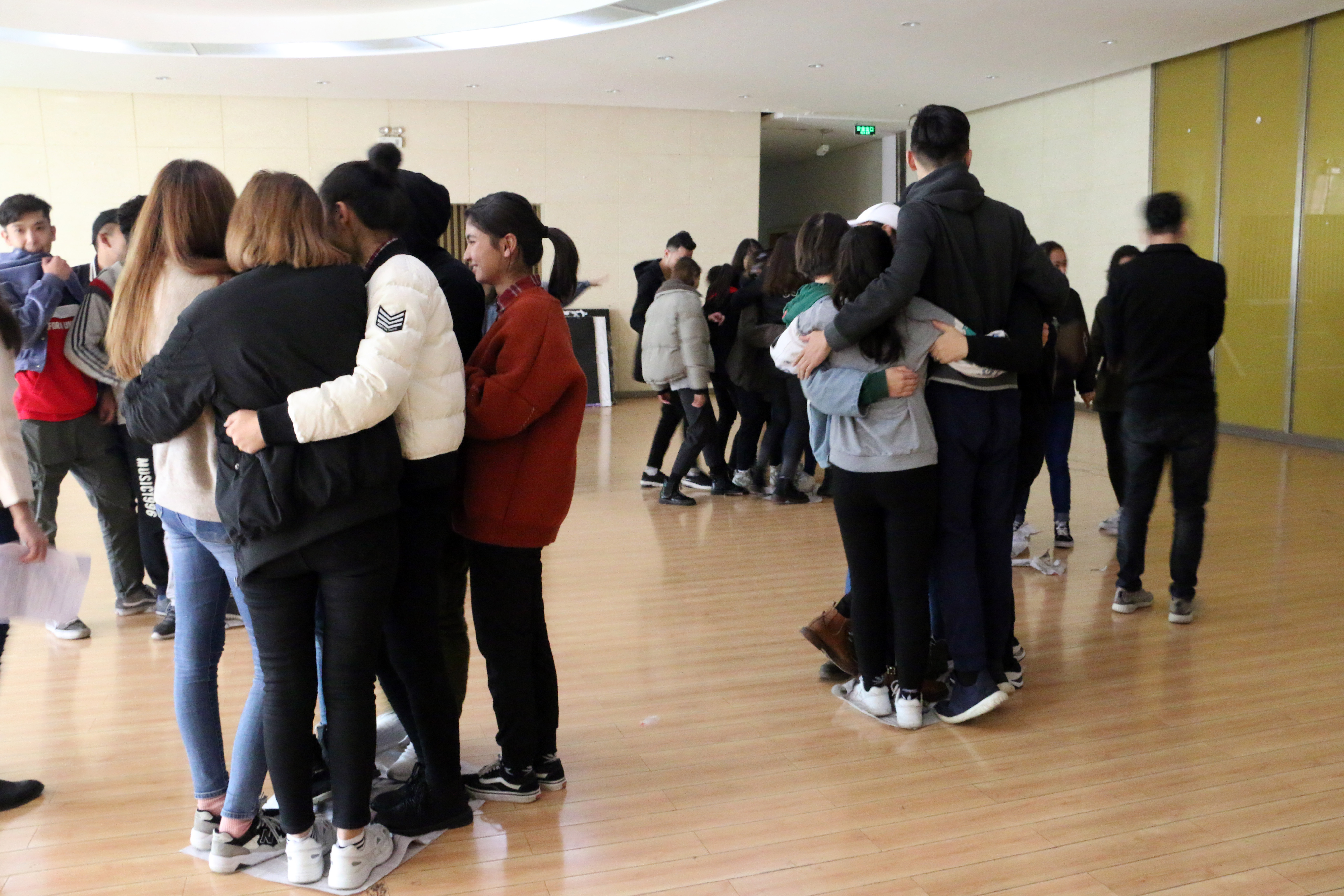 预科三班同学在学子食府五楼举行了以“1+1>2——增进交流,提高团队凝聚力”为主题的团体心理辅导活动。此次活动由三班心理委员主持,三班全体同学参加了此次活动。