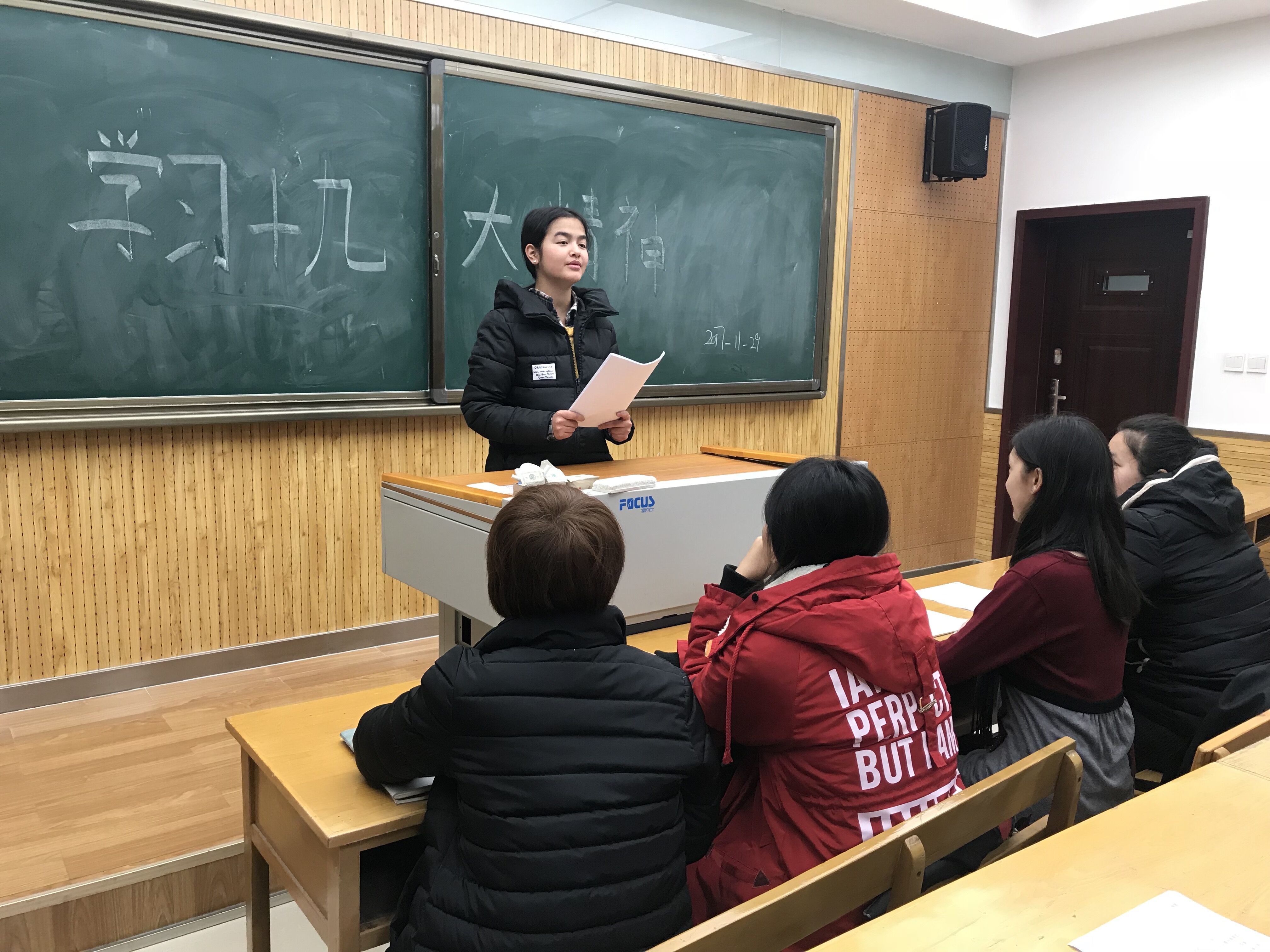 班会伊始,团支书麦丽开木讲解了十九大会议的相关内容,围绕以“不忘初心,牢记使命、高举中国特色社会主义伟大旗帜,决胜全面建设小康社会,夺取新时代中国特色社会主义伟大胜利”的主题报告,着重强调了十九大的报告精神和意义。班会上,布萨热姆同学说:学习习近平总书记的工作报告内容,让我更加明确作为当代大学生所肩负的光荣使命。今后,我将要报效祖国的热情与创造未来的激情转化为实际行动,努力学习预科阶段的科学文化基础知识,打好基本功,不断提高汉语综合能力,像习近平总书记在十九大报告中指出的,坚定理想信念,志存高远, 脚踏实地,勇做时代的弄潮儿,为中国梦的实现奉献出自己一份微薄之力。