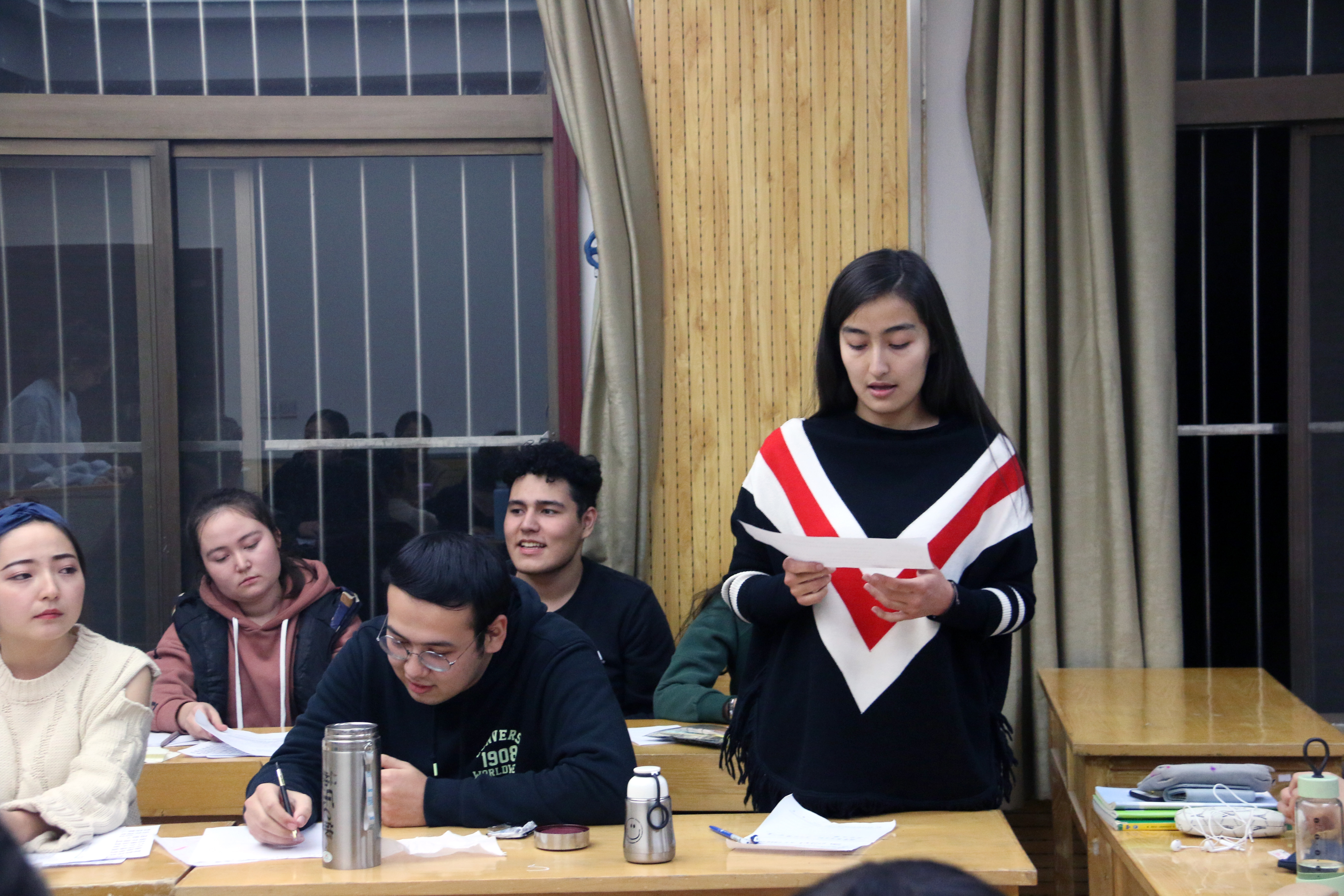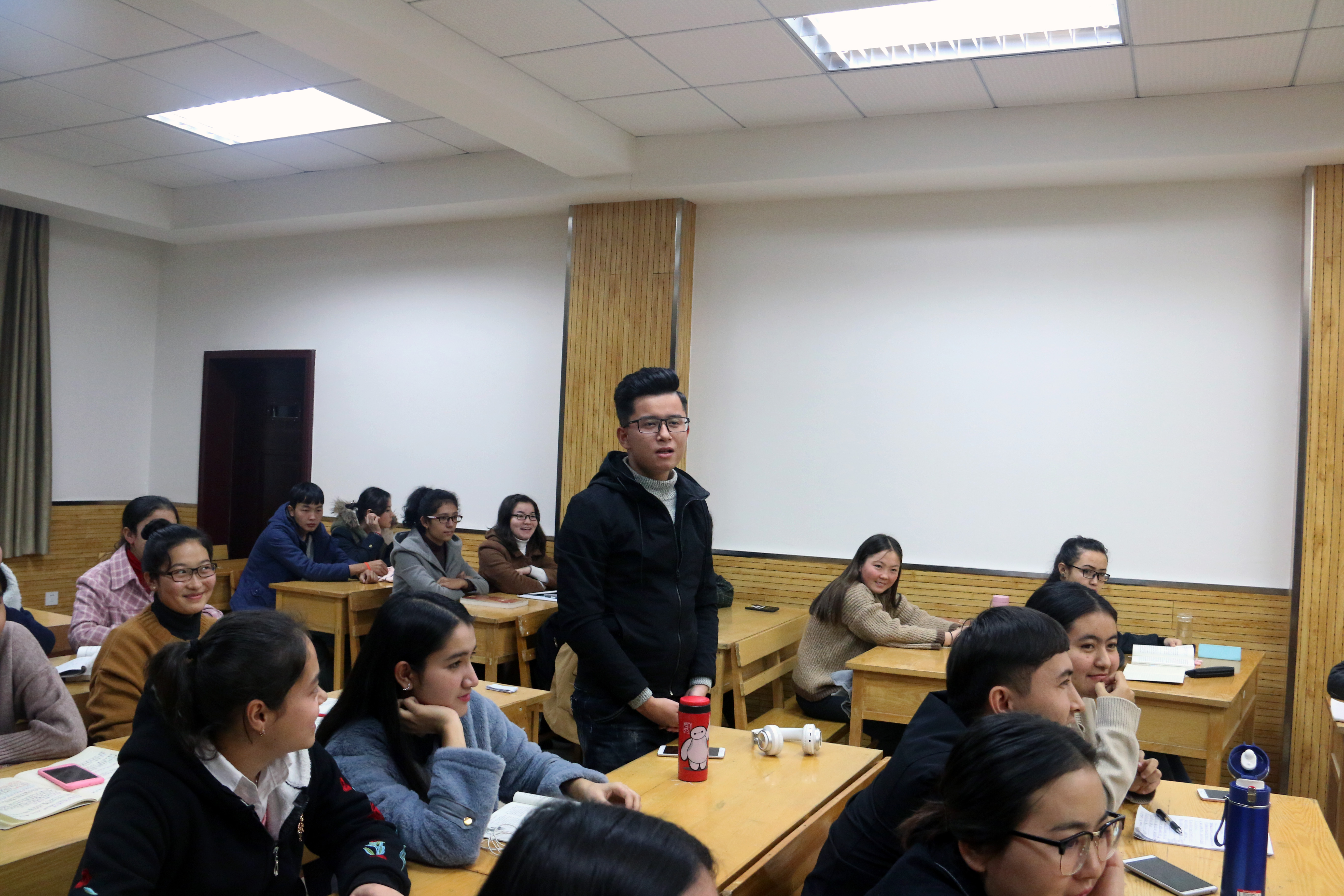 专职辅导员热依木老师和全班同学参加了本次活动。活动由我班团支书凯蒂亚·艾麦江同学全程主持。