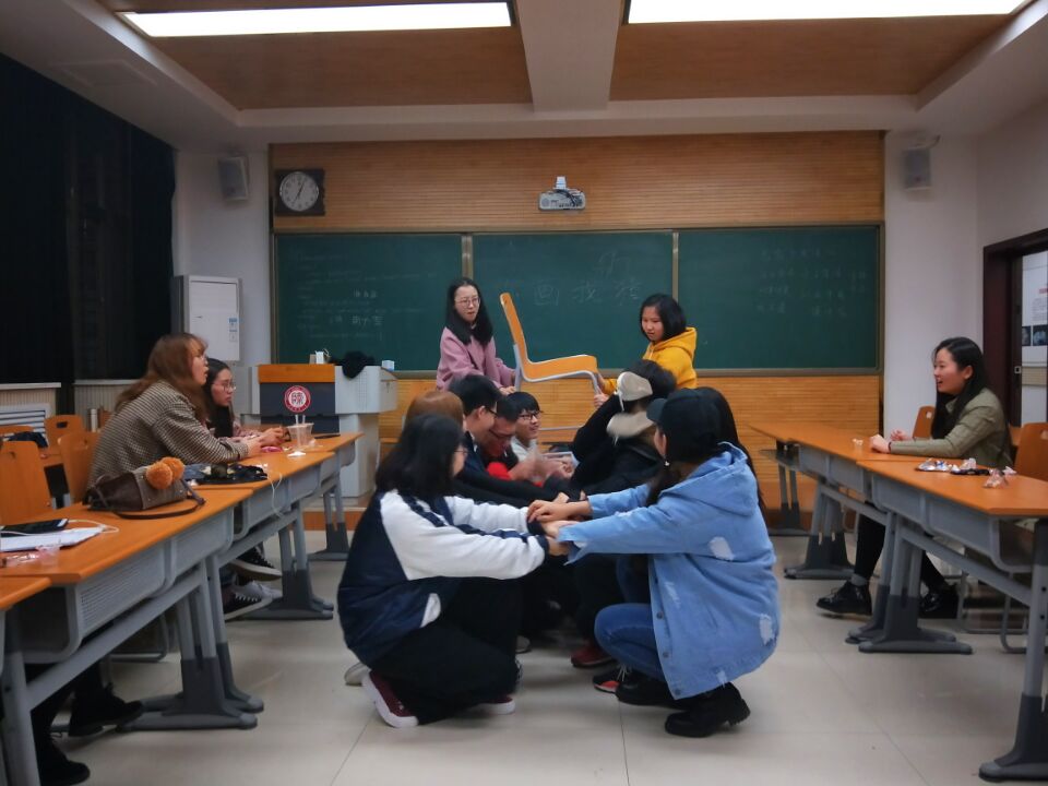 活动第一项为“你画我猜”。在此环节,有三组同学上台来进行竞争比赛,看谁猜出的词语最多。一名同学来通过动作、语言等方式来让另一位同学猜出相应的词语或者是成语。三组同学配合默契,游戏过程之中台下的观众们也看的津津有味。其中杨洋、袁敏、于佳淼组合猜出的词语最多,最终取得了胜利。张慧宇组合猜出的词语最少最终收到了惩罚。