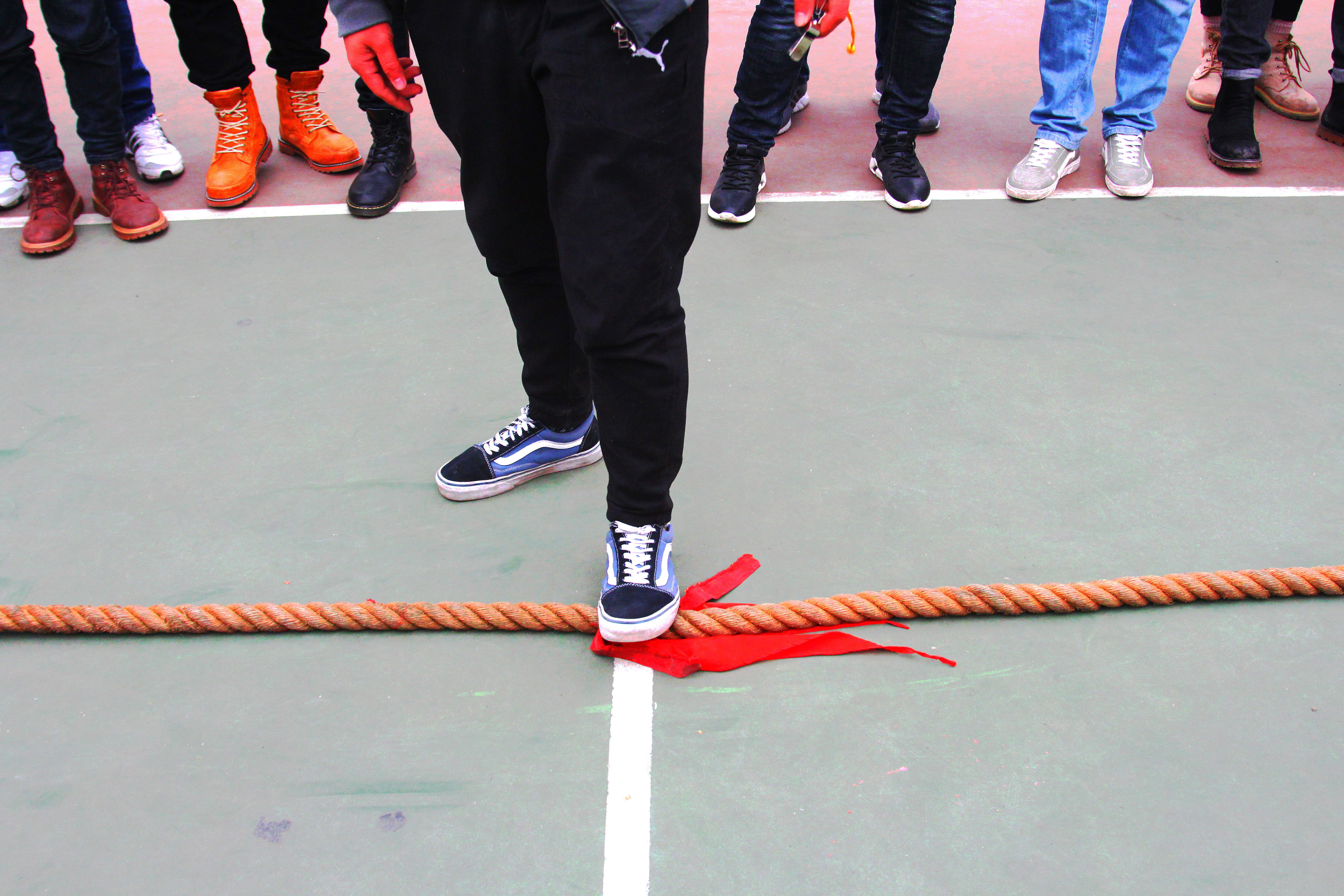 此次拔河比赛实行淘汰制晋级方式,以两个宿舍12人为一队,男女宿舍之间分别通过抽签决定合作队员和对手,一组两队进行比赛,先拉过线一方获胜,晋级队伍再次PK,最终获胜的一队为冠军。