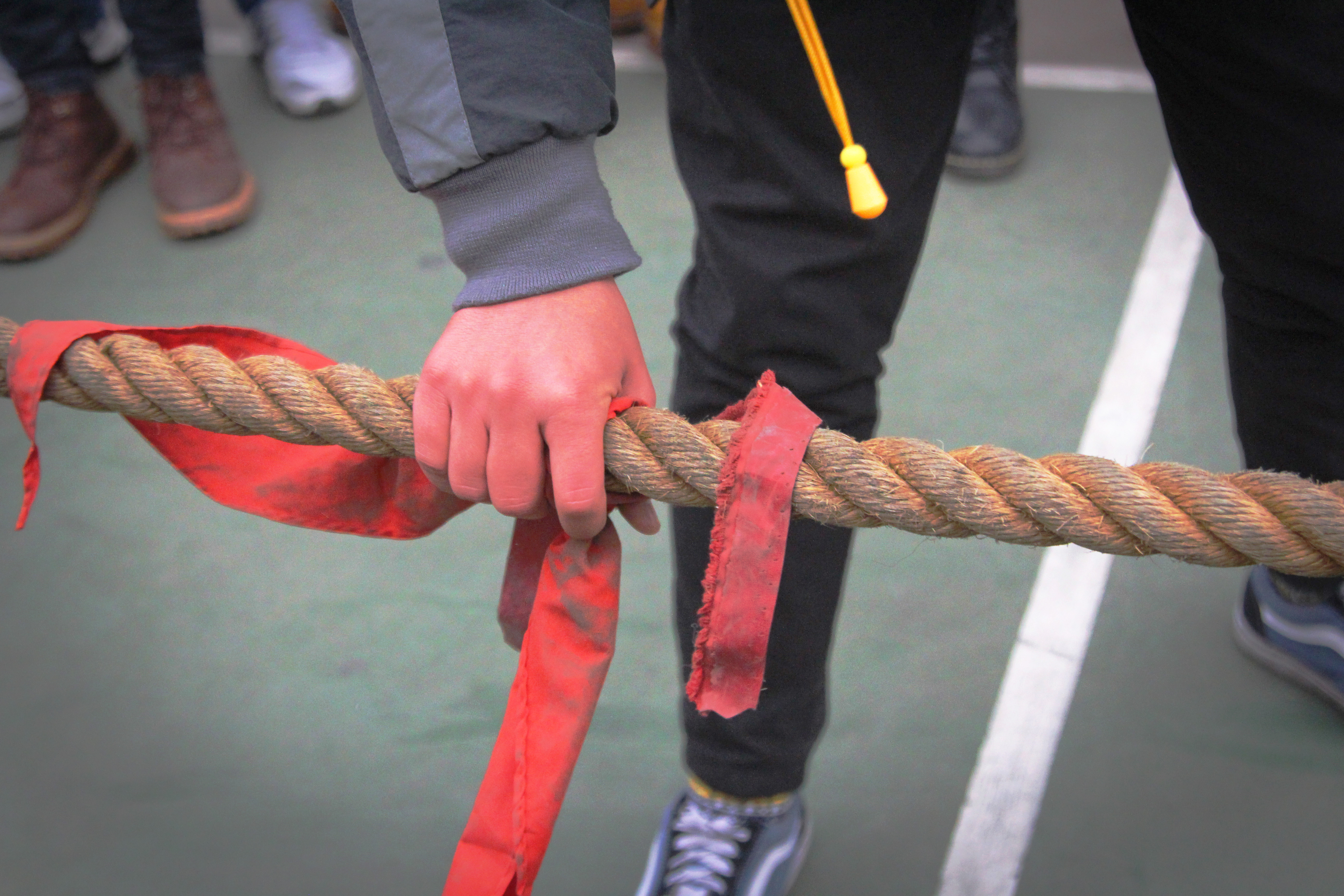 当比赛的哨声一响起,队员们口中一齐高呼着“一二,一二”,双手紧握长绳,憋足了劲拼命往后拉,在场观赛的同学们自发组成啦啦队为参赛人员加油。呐喊声此起彼伏,裁判们依据公平公正的原则,参赛人员本着" 友谊第一,比赛第二" 的原则,整场比赛进行有序,过程激烈却又饱含乐趣。经过激烈的耐力,体力较量,最终分别评出男、女生参赛队伍前三名。