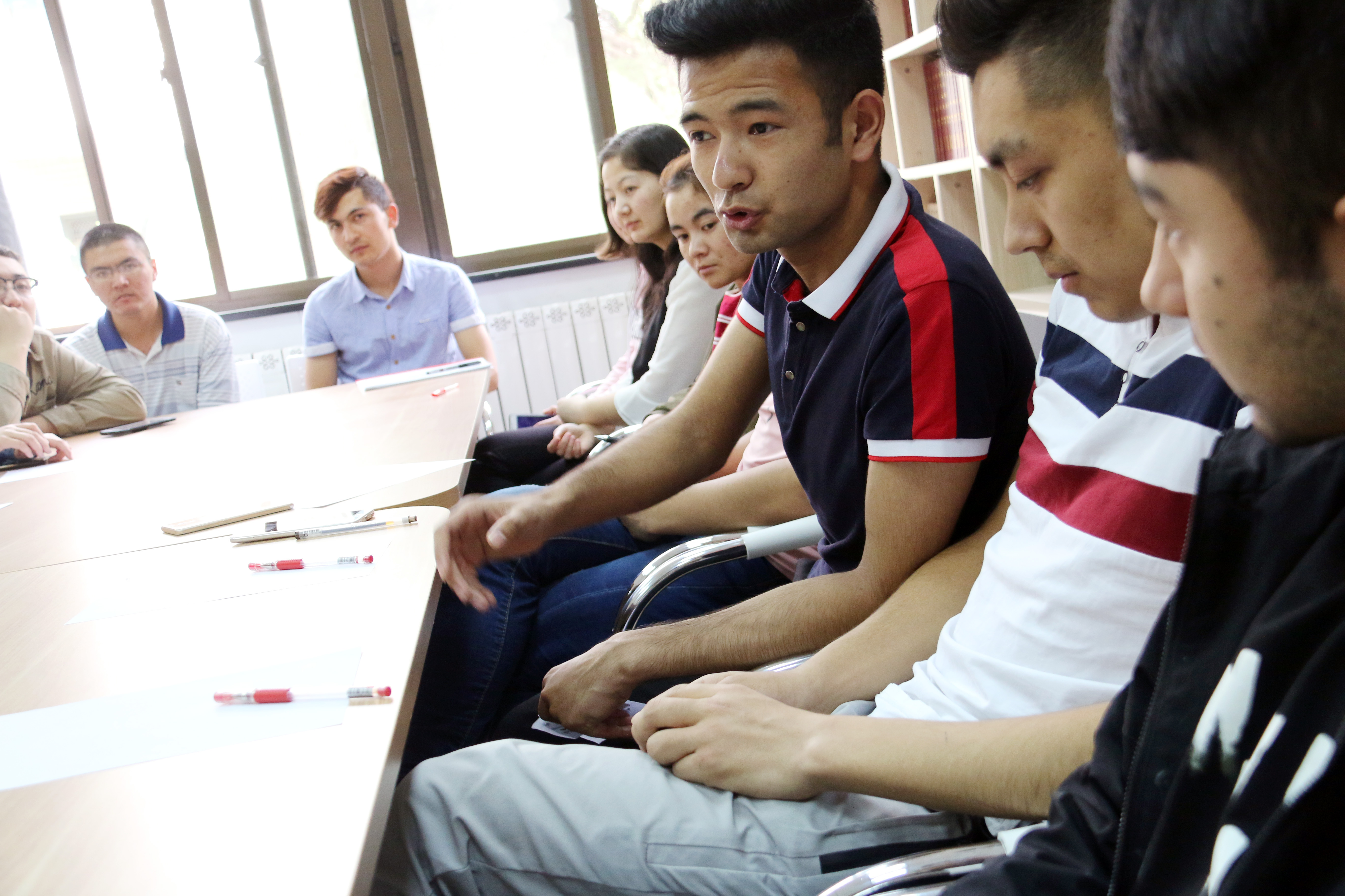 继第二个话题后,大家又围绕第三个话题“学习是为了应付考试还是学习知识”进行激烈的讨论。正方认为,应试教育的模式化限制了青少年的思想,平时解题时都会有固定的模式,所以学习是为了应付考试;反方的依力夏提则表示:“在赌场老虎机