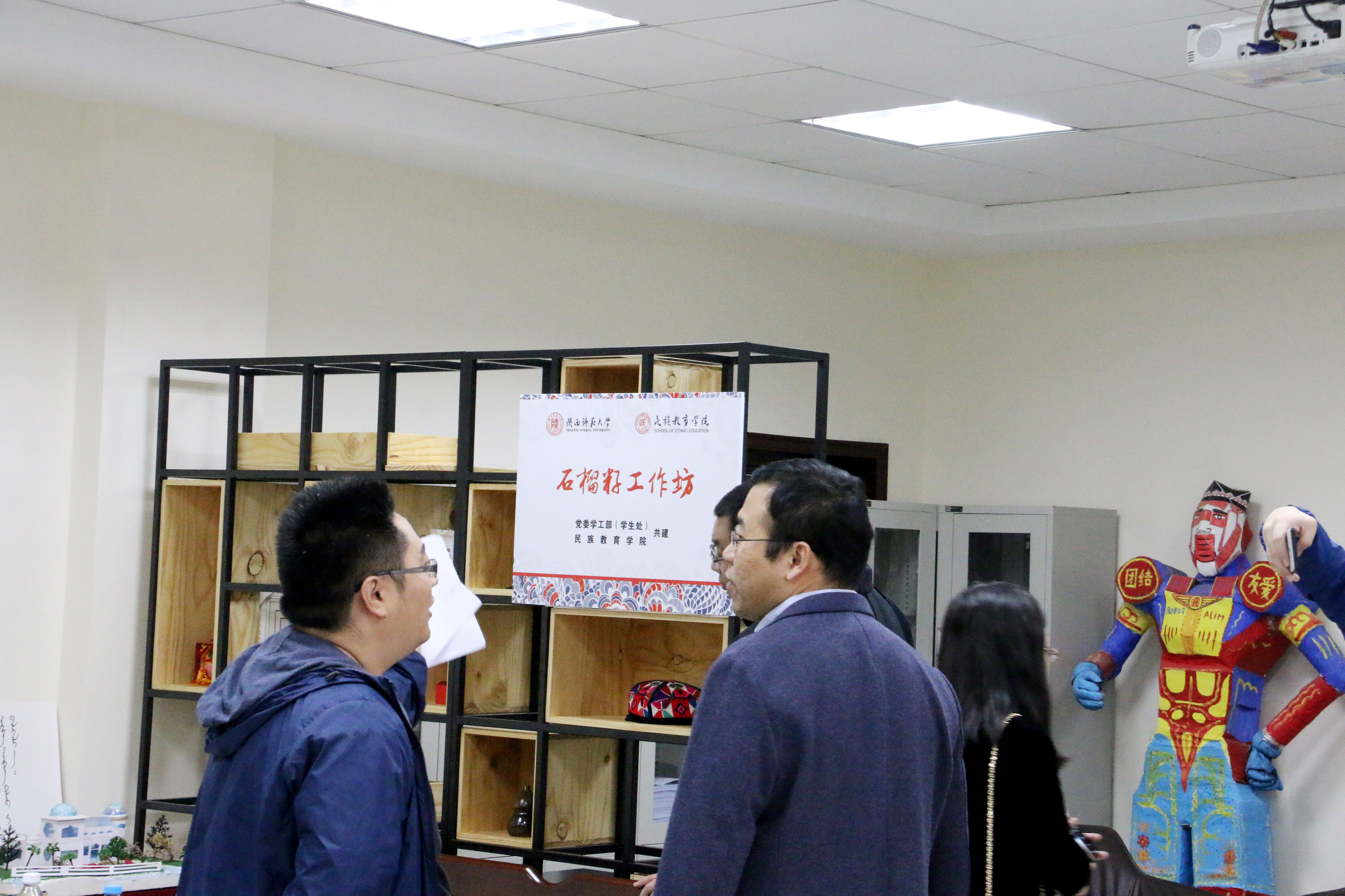 “悦心坊”二级心理辅导站、石榴籽工作坊、民族教育成果陈列室、少数民族大学生马列理论学习中心、党团学生活动室等活动场地,并向大家介绍了以“同心共筑中国梦,中华民族一家亲”为主题的手绘文化墙,并对特色内容展示做了寓意介绍,同时也对文件柜中150余学生工作材料和学生管理制度档案盒做了简单介绍,展示了赌场老虎机