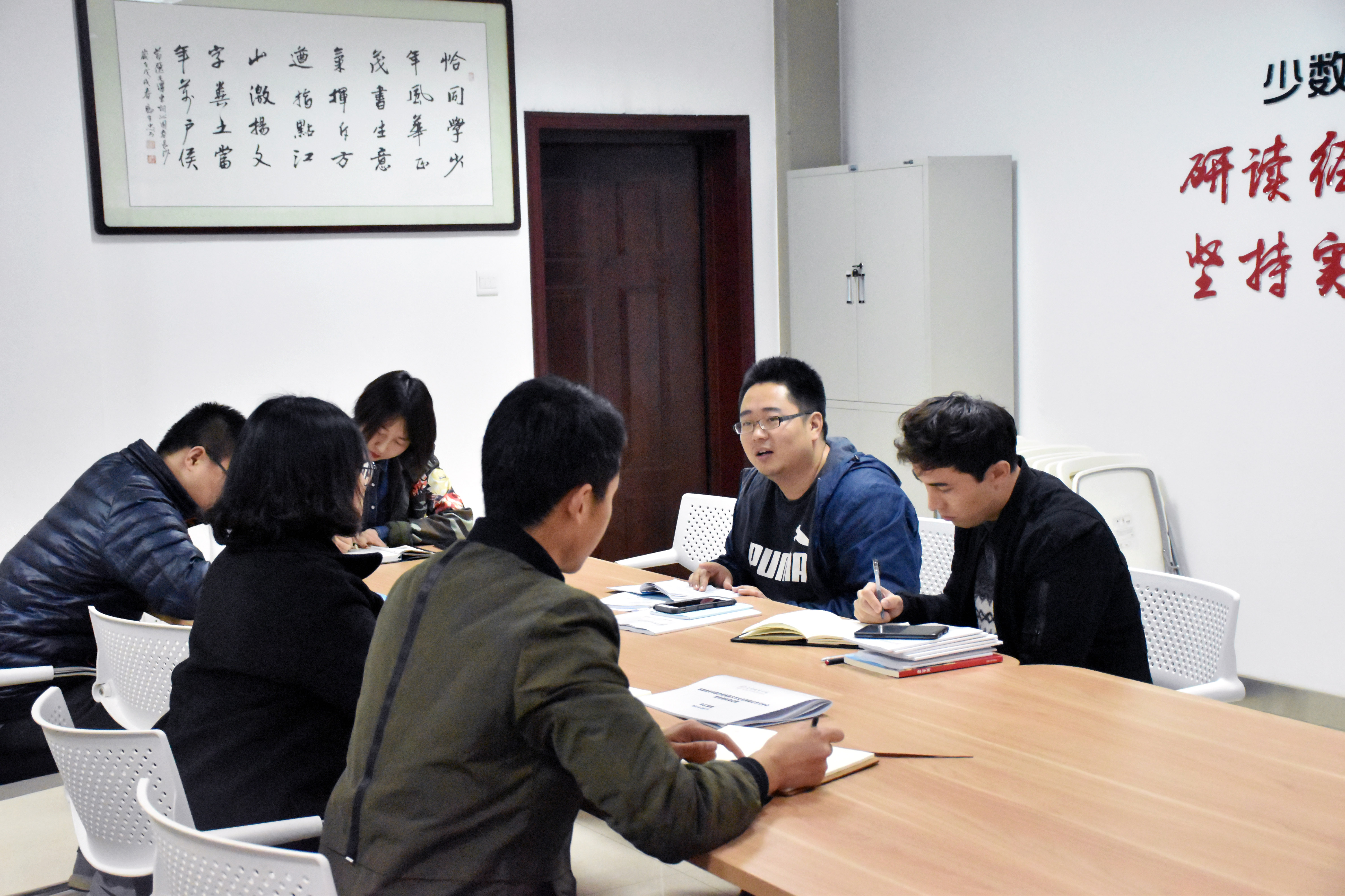 在六附楼305会议室召开了学生工作推进会议,我院党总支副书记行政副院长窦文阳,预科生班主任教师乔露、谢欣然、专职辅导员热依木以及兼职辅导员许珊、王国昌参加了会议。