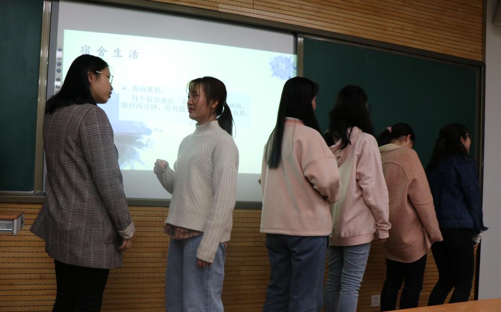 “宿舍文化月”,并开始了第三段游戏:你画我猜,随机选出的三组宿舍虽然过程有点艰难,但都十分顺利地完成了任务,最终由韩晓玉等人的宿舍取得了胜利。