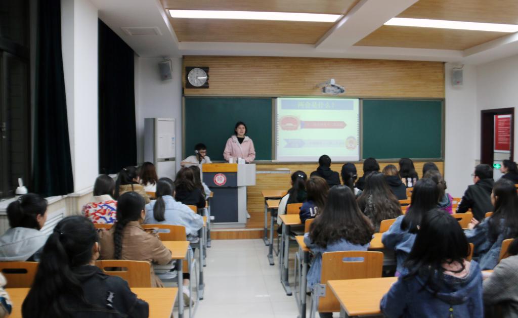 活动伊始,2018级预科三班团支书祖丽阿亚提·买买提向大家介绍了此次主题团日活动的背景、意义以及流程。首先她给同学们讲解了今年两会大家所关心的重点话题和热点问题,使同学们进一步升华对我国的政府是人民的政府的认同,更加深入地感受到我们的政府是一个全心全意为人民服务的政府,脚踏实地为人民幸福而奋斗的政府。同学们听完两会报告后颇有感受和启发。2018级预科三班的左热古丽·乌斯曼说到“通过今天的学习,我感受到作为当代大学生,我们肩负着全面建成小康社会的历史重任,也肩负着自身理想的实现,更肩负着中华民族的伟大复兴!对于未来我也满怀期待,相信在我们党的正确领导下,在全国各族人民的共同努力和团结奋斗下,我们的祖国会实现伟大复兴的中国梦,我们的生活也会变得更加美好!”。