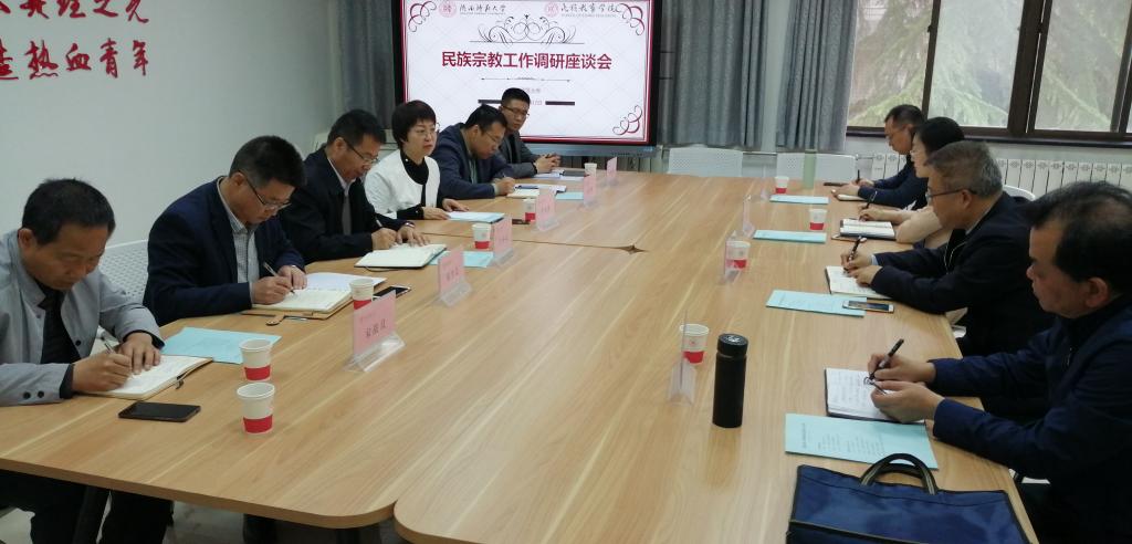 民族宗教工作的开展情况、务实举措和取得成效,并就新时代高校民族宗教工作中遇到的新问题、新情况同与会成员进行了交流探讨。