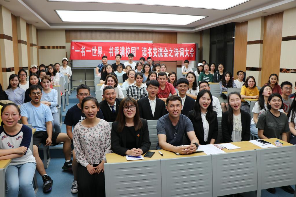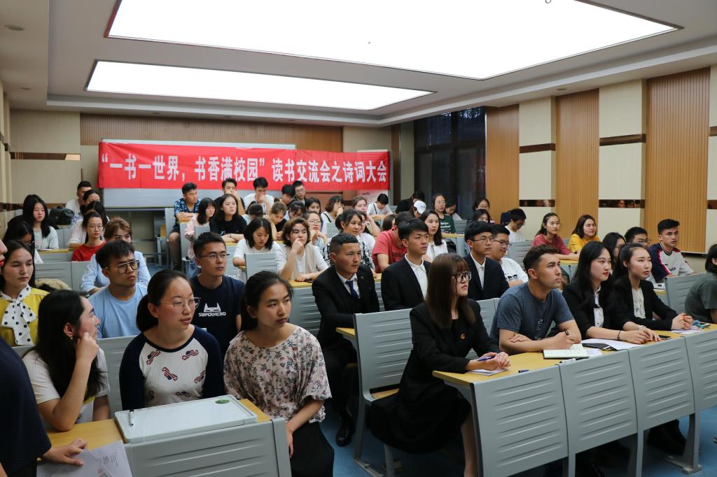 专职辅导员热依木、学生会主席团成员、各班学生代表参加本次诗词大会,大会由2018级预科一班谷思雨同学主持。