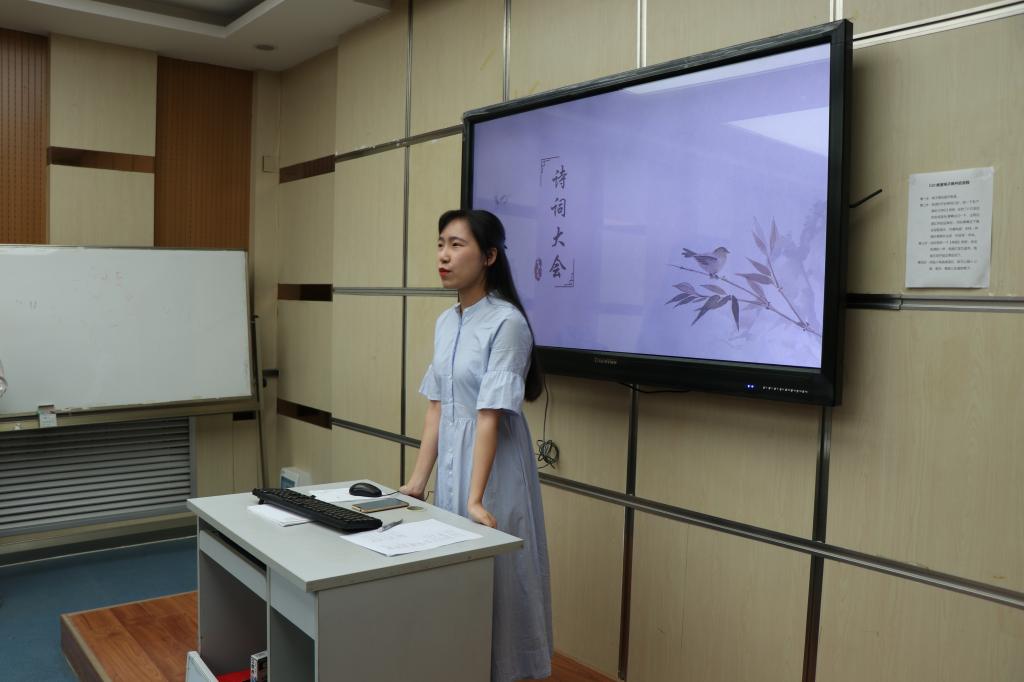 在主持人对比赛规则作简要说明并将选手随机分组后,开始了以 “妙笔生花”、“奇文共赏”、“理解性阅读”、“选手抢答”四部分为活动内容的诗词比赛。