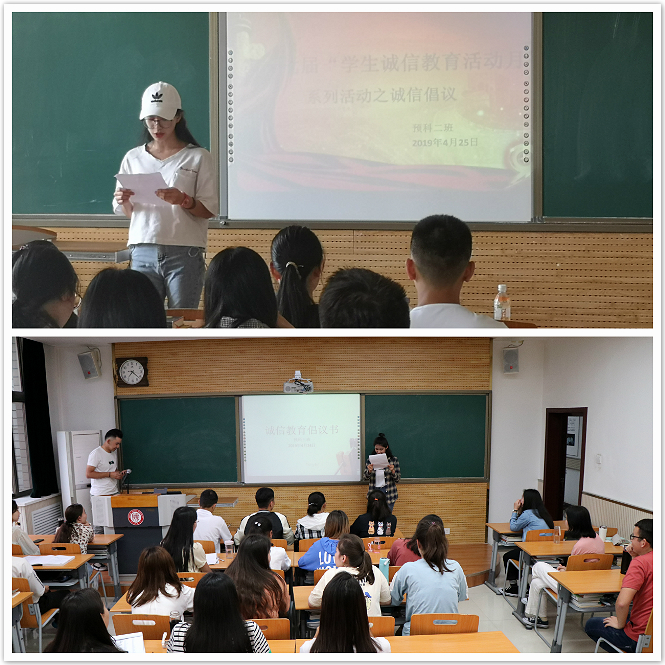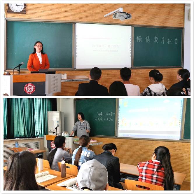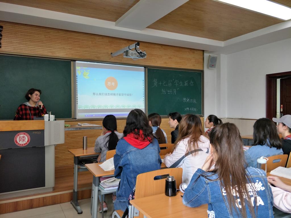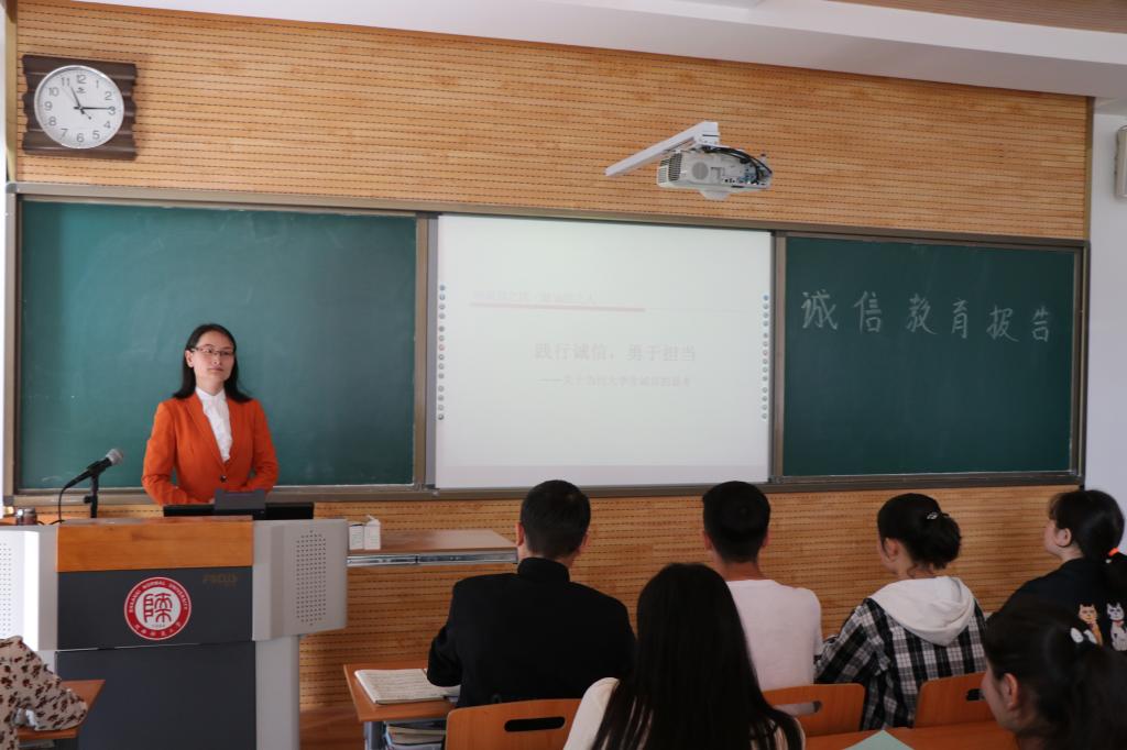 中国语言文学教研室教师卢静和谢欣然老师在各预科班固定教室分别就“践行诚信、敢于担当”“大学生不良网贷行为及其影响”、“奖助学金申请、考试诚信”及“如何建立个人诚信档案”等主题做了诚信专题报告。