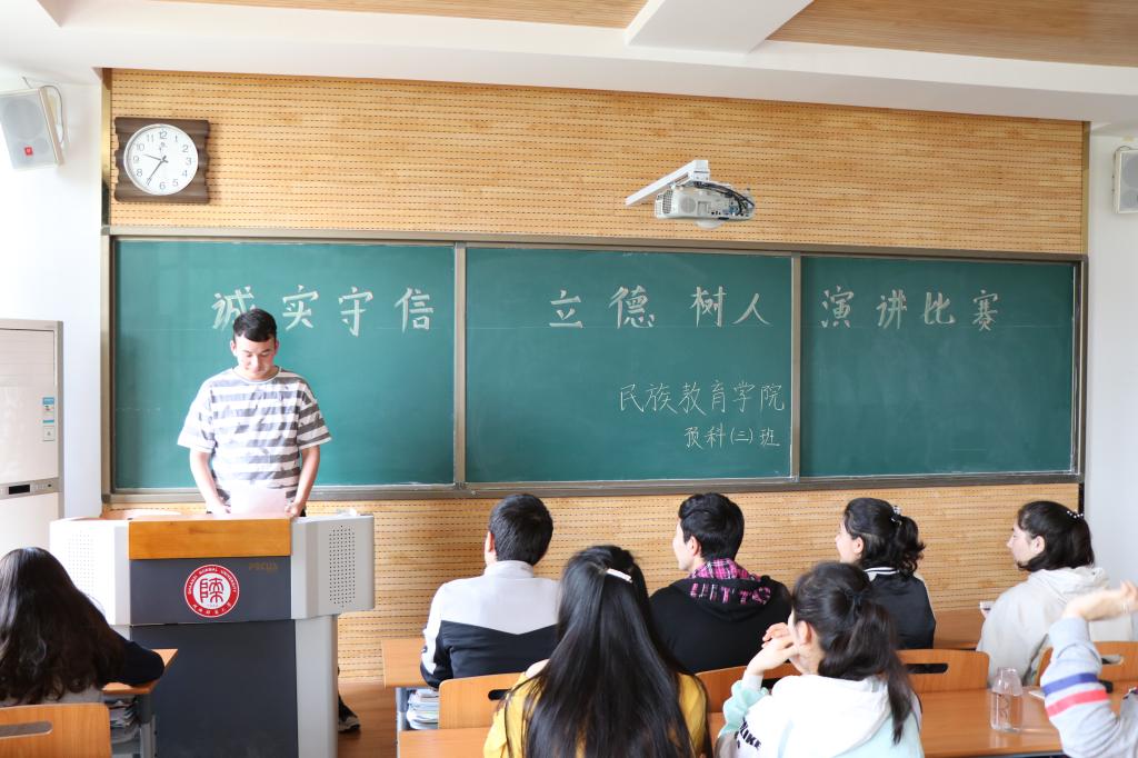于4月28日晚在六附楼110教举办了“诚信立身,诚信立学,诚信立信、诚信立行”主题诚信演讲比赛,中国语言文学教研室教师谢欣然担任比赛评委,比赛由预科二班邹粤龙同学主持。通过各班选拔7位同学参与本次比赛,决出一等奖1名、二等奖2名、三等奖3名、优秀奖1名。