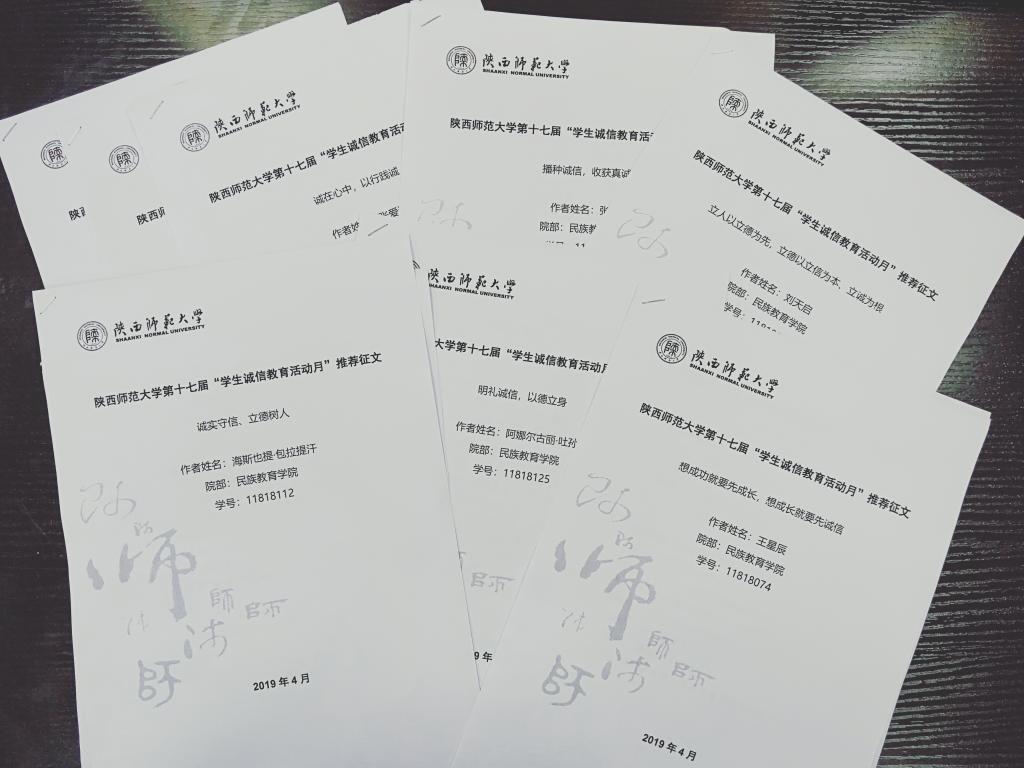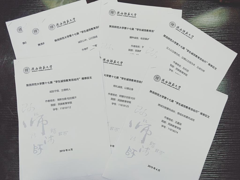 举办了以“诚实守信、立德树人”为主题的征文比赛。同学们积极参与,热情高涨,征文内容健康丰富,形式多样,题材广泛。