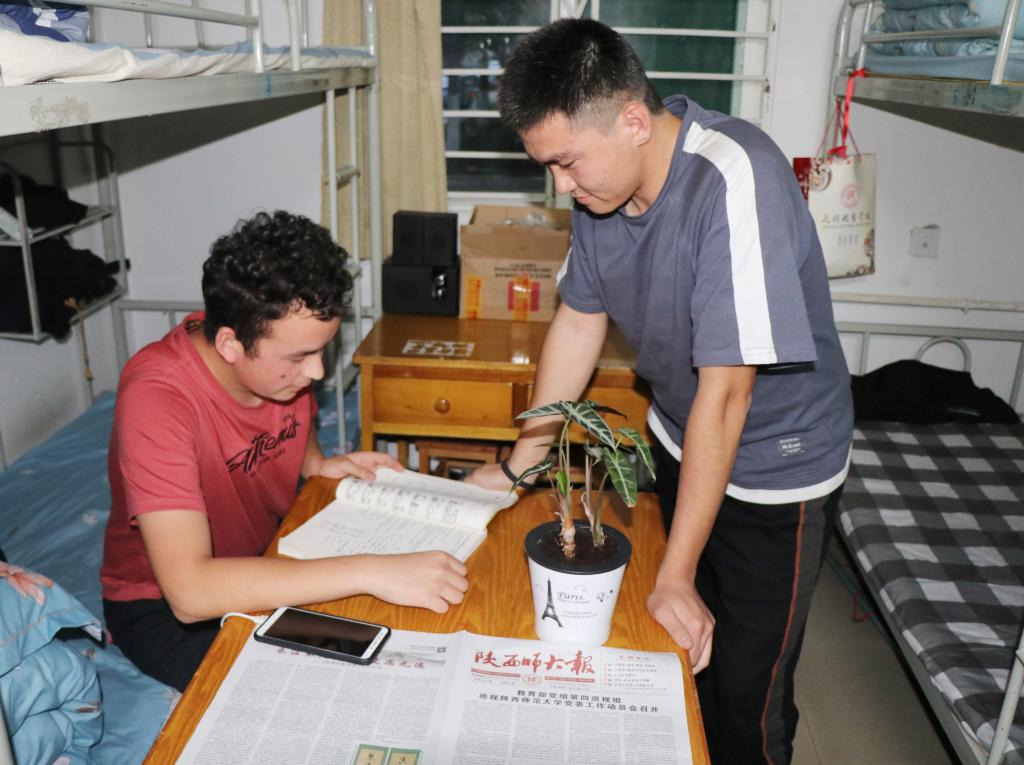 专职辅导员仔细走访每个寝室并和同学们亲切交流,关心他们近期学习、生活和参加活动情况,鼓励同学们在学习之余,注重寝室文化建设,打造校园文明软实力。辅导员就用电安全、宿舍卫生、宿舍文化建设等方面对同学们做出了强调。他希望,将“一学一做”与宿舍环境建设相结合,能够制定舍规,轮流值日,积极营造干净整洁舒适的学习型宿舍环境。特别提醒同学们注意用电安全,离开宿舍要拔除电源插头,杜绝出现手机空充等安全隐患。此外,对于同学们在宿舍文化建设时,采用张贴海报等方式,学习习近平总书记语录,铭记坚持党的领导表示肯定。鼓励大家要在日常生活中关心时政,积极响应党的号召,为成为新时代下的新青年而不断努力。