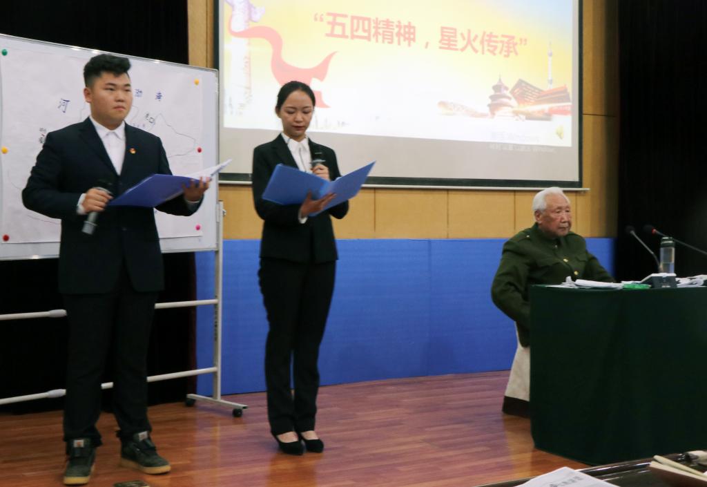 青年师生继承和弘扬五四精神,牢记历史,担负起新时代要求的责任和使命,为实现“两个百年目标”和“中华民族伟大复兴的中国梦”不懈奋斗,让五四精神薪火相传。