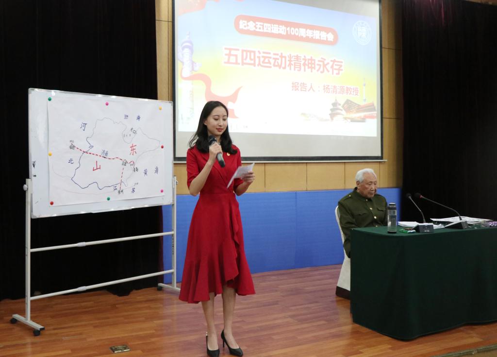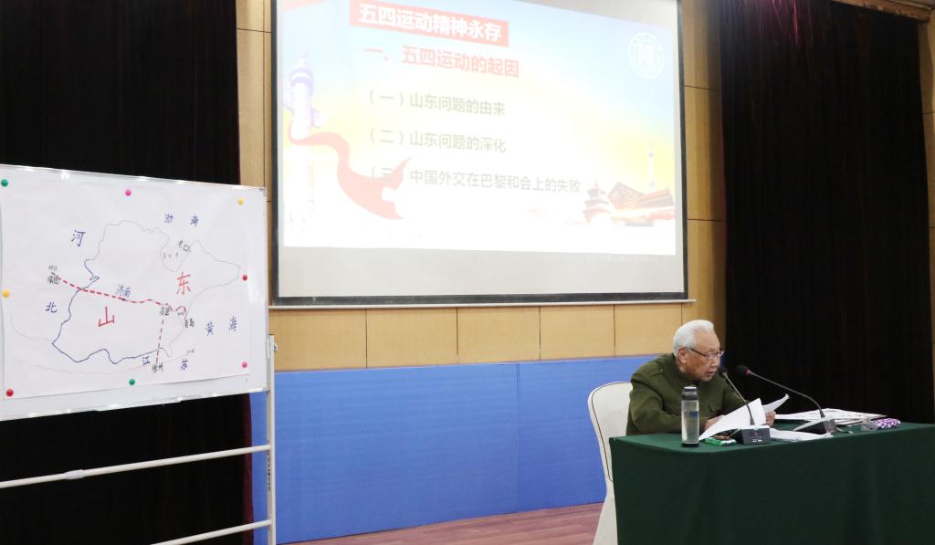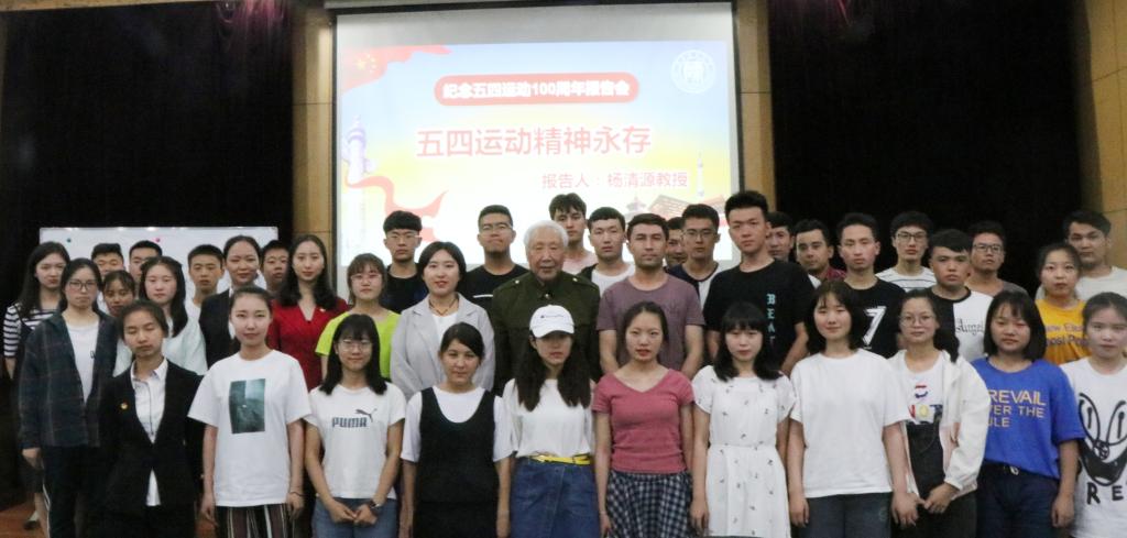 报告会上,杨清源老教授引用大量详实的史料对五四运动的起因、经过、历史地位、意义及其精神内涵进行详细阐述,他用激情昂扬的语言感染了在场的每一位学生,学生们接受了一次生动的爱国主义教育。他强调,爱国主义是一个历史范畴,一个时代有一个时代的主题,一代人有一代人的使命,每一代青年都要用自己的思想、智慧和行动为爱国主义做出答卷。他深入浅出地讲解了爱国主义不仅要有口号和旗帜,更重要的是实践,当代青年应该坚定理想信念,志存高远,脚踏实地,他要求学生们珍惜时光,好好读书,做新时代的奋斗者、弄潮儿,在新时代书写属于自己的精彩。