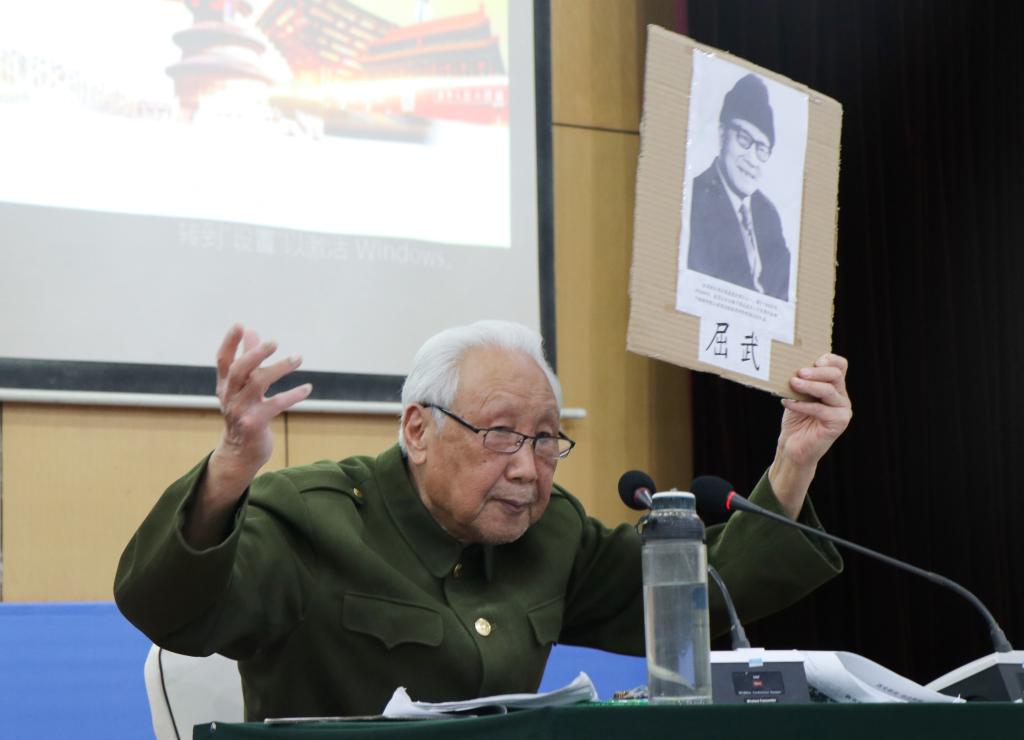 报告会最后,2018级预科二班邹粤龙同学和付歆瑜同学声情并茂地朗诵了诗词“五四精神 薪火传承”,表达了他们对五四精神的理解。朗诵结束,杨教授站起来挺起腰板,颤巍巍的抬起右手向在场师生敬了一个特殊的军礼。杨教授的精彩报告使学生们的归属感、责任感、荣誉感、使命感油然而生,现场掌声不断。