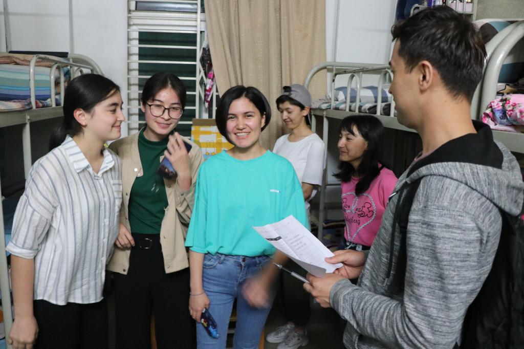 专职辅导员仔细走访每个寝室并和同学们亲切交流,关心他们近期学习、生活和参加活动情况,鼓励同学们在学习之余,注重寝室文化建设,打造校园文明软实力。接着,辅导员就宿舍卫生、宿舍安全、宿舍文化建设等方面对同学们做出了强调。他表示,大家应该将“一学一做”、团课学习与宿舍文化建设相结合,在日常宿舍生活中制定舍规,轮流值日,积极营造干净整洁舒适的学习型宿舍环境。提醒同学们注意用电安全,离开宿舍要拔除电源插头,杜绝出现手机空充等安全隐患。此外,对于同学们在宿舍文化建设时,采用张贴海报等方式学习习近平总书记的语录,铭记坚持党的领导表示肯定和表扬。鼓励大家要在日常生活中关心时政,积极响应党的号召,将成为新时代的骨干力量和优秀人才而不断努力。最后,他希望同学们能够珍惜同学情,宿舍情,在这个多民族的大家庭中携手共进。