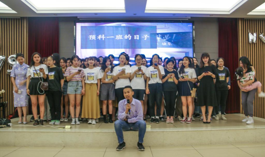 研究生、预科生参加结业大会,大会由预科一班马迎新、韩希玥、预科二班邹粤龙与预科三班艾利同学主持。