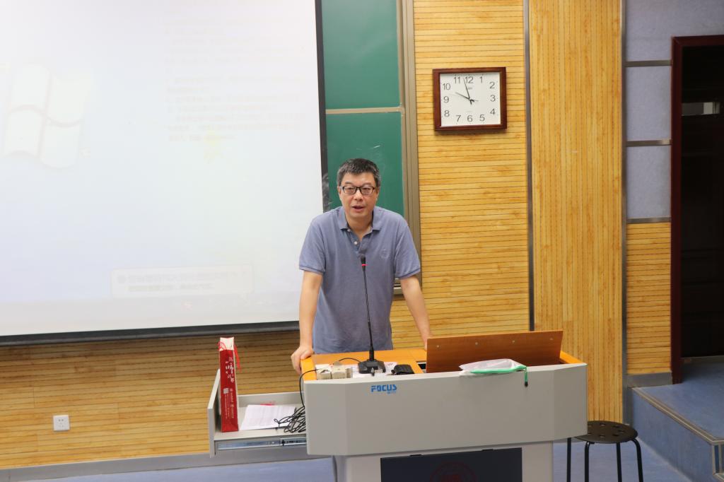 院长冯建新主讲,专职辅导员热依木主持,2019级全体预科新生参加讲座。