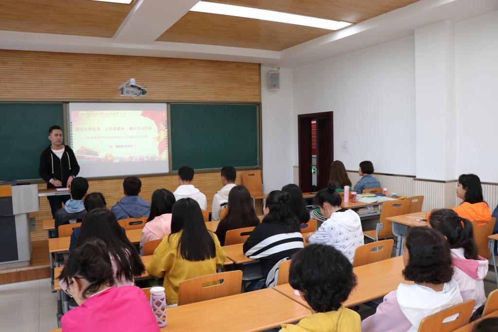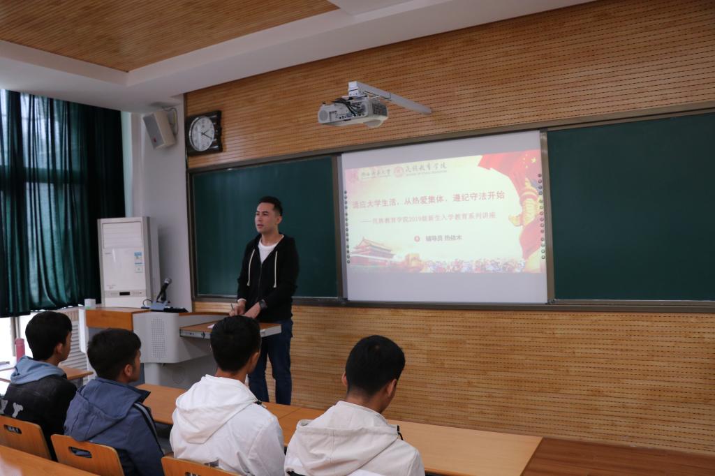 专职辅导员热依木老师,以“适应大学生活,从热爱集体、遵纪守法开始”为题,结合赌场老虎机